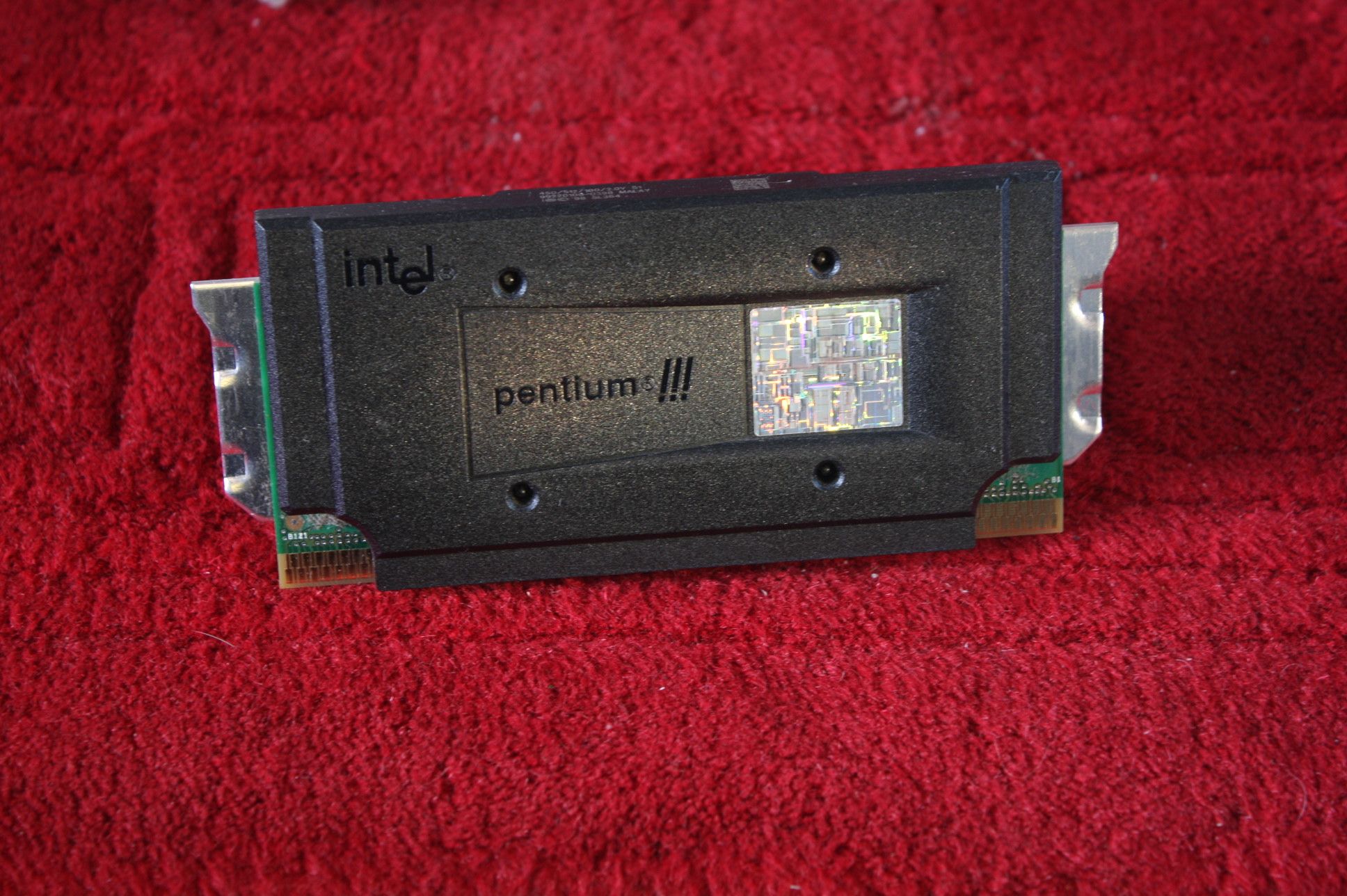 The processor itself…brings me back to the good old days of cartridge gaming, and having to blow the dust of the damn thing all the time. The holograph thing looks pretty cool, and the whole unit cleaned up really nicely. That’s what I like about old computer stuff. It may be ancient, and caked in layers and layers of dust, but the dust preserves everything; almost like wood in a bog. And when the dust is cleared off, it’s as good as new again. I have no idea what to do with all these components now that they’re removed from the system. I suppose I should stick them back into another old case and build a low power PC to give away, if anyone knows of someone in need of such a thing. A P3 is not to be sniffed at – there’s enough grunt for web browsing and basic multimedia, and it happily runs Windows XP. I need rid of it! I’m tripping over computers everywhere here; the vast majority of them being 10 years or older.