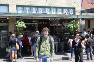 Seattle! I only managed to get there for a day, but it was a great day at that. It was near the end of the trip, and we were running low-ish on money, so that ruled the more expensive attractions out (sorry Space Needle). There was still lots to do for those low on cash. Personally, when I’m in a new city I like to spend some time just exploring and getting a feel for the people and the place. Seattle was significantly different from what expected, which is what I’ve found with most of the big American cities I have visited. We managed to get to the Pike Place Market, Ye Olde Curiosity Shop, a cool (but expensive) antique shop, the Pacific Science Centre, and Kerry Park. And of course the famous first location of Starbucks. It’s not my favourite chain of all time, being over-priced and of average quality, but they do make some damn good mugs, and thanks to one American in particular I’m now obliged to collect them! We stood outside Starbucks, which doesn’t have any seating and is pretty tiny, and decided not to go in because it was completely packed with tourists.