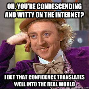 I’m suffering at the hands of an essay…this was part of an entry destined to be published three weeks ago. Needless to say, it didn’t happen, but it is happening now. If nothing else, it may distract you from the fact I haven’t been very active on here recently. Enjoy this unrelated picture of condescending wonka!