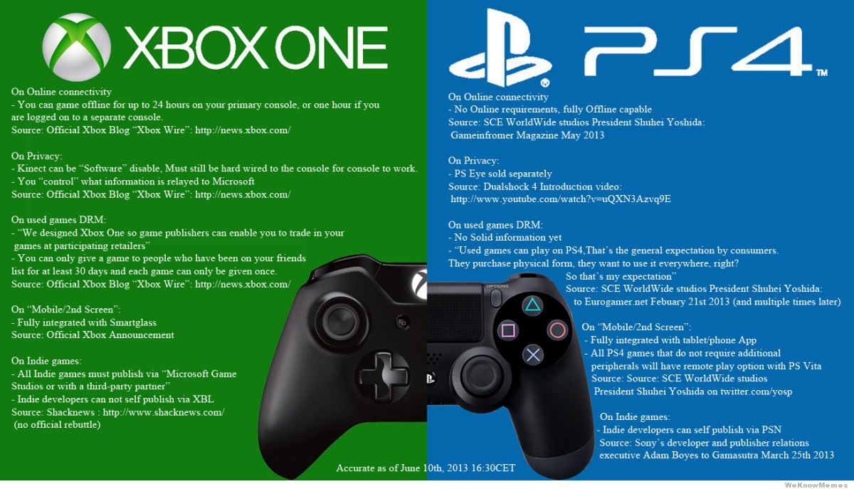 A big concern for many gamers has been the used game market for the next generation consoles. The Xbox One allows you to play games without the disc in the drive (finally a blu-ray drive too), but each game copy is unique to one user, and can only be registered to one account. That means no more lending or borrowing games from friends, though you can play at a friend’s house if you sign into your account, and if you want to sell on a used game there will most likely be a fee (possibly a hefty one at that). The PS4 has left policy on used games much more open, and at the same time left Microsoft looking like absolute fools. On a different, but awesome note, I just found out that I could play my old PS1 games on the PS3! Metal Gear Solid is again being revived.