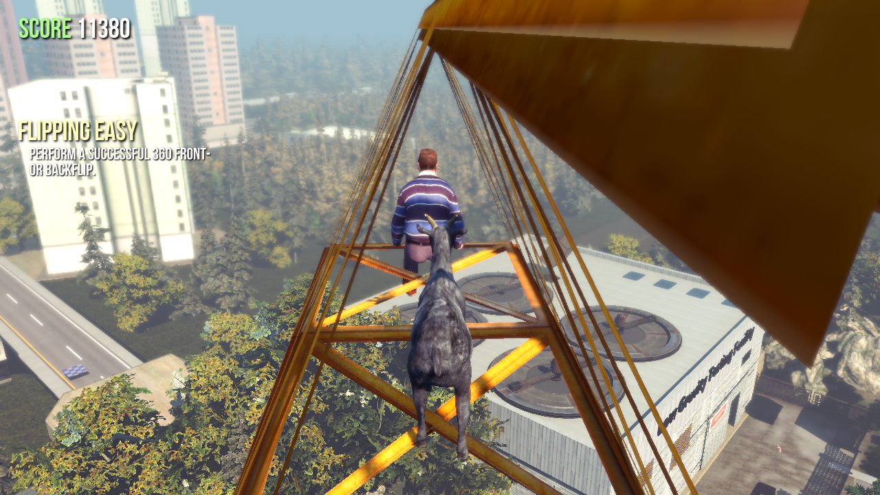 Goat Simulator has arrived! Well, it arrived last Friday but I’ve been too busy playing it and, at times, doing actual work that I have not got round to writing about it. Fear not, however, as this is the long awaited review of Goat Simulator. Perhaps one of the greatest games of our time, Goat Simulator allows you to take a step out of your comfort zone, and into the mind of a lone ruminant, wandering around a small settlement. And as goats often do, causing as much havoc as possible. Small, broken, and brief are perhaps the best adjectives used to describe Goat Simulator, but it is still a fun game. It is hard not to smile when you lick a petrol pump, and quite logically, cause the entire petrol station to explode. Or raining goats on a peaceful protest against “penis-shaped foods”. Okay, describing it as one of the greatest games of our time might be a push, but it is definitely worth a look. It isn’t the best value game in the world, as other developers have put far more time and effort into titles selling at the same price, but if you can even find someone who has bought it and give it a go, you won’t be disappointed. There is a finite amount of fun to be had, but some of the things you can do are really great, ranging from fighting in a goat arena to becoming the Master of Goat Castle, and even performing human sacrifice to gain evil powers. The limitations lie with your imagination, and the map size, which is fairly compact. I have no doubt that a number of talented people will come up with new maps and mods to extend the playable life of the game, but for now it is a short but still enjoyable experience.