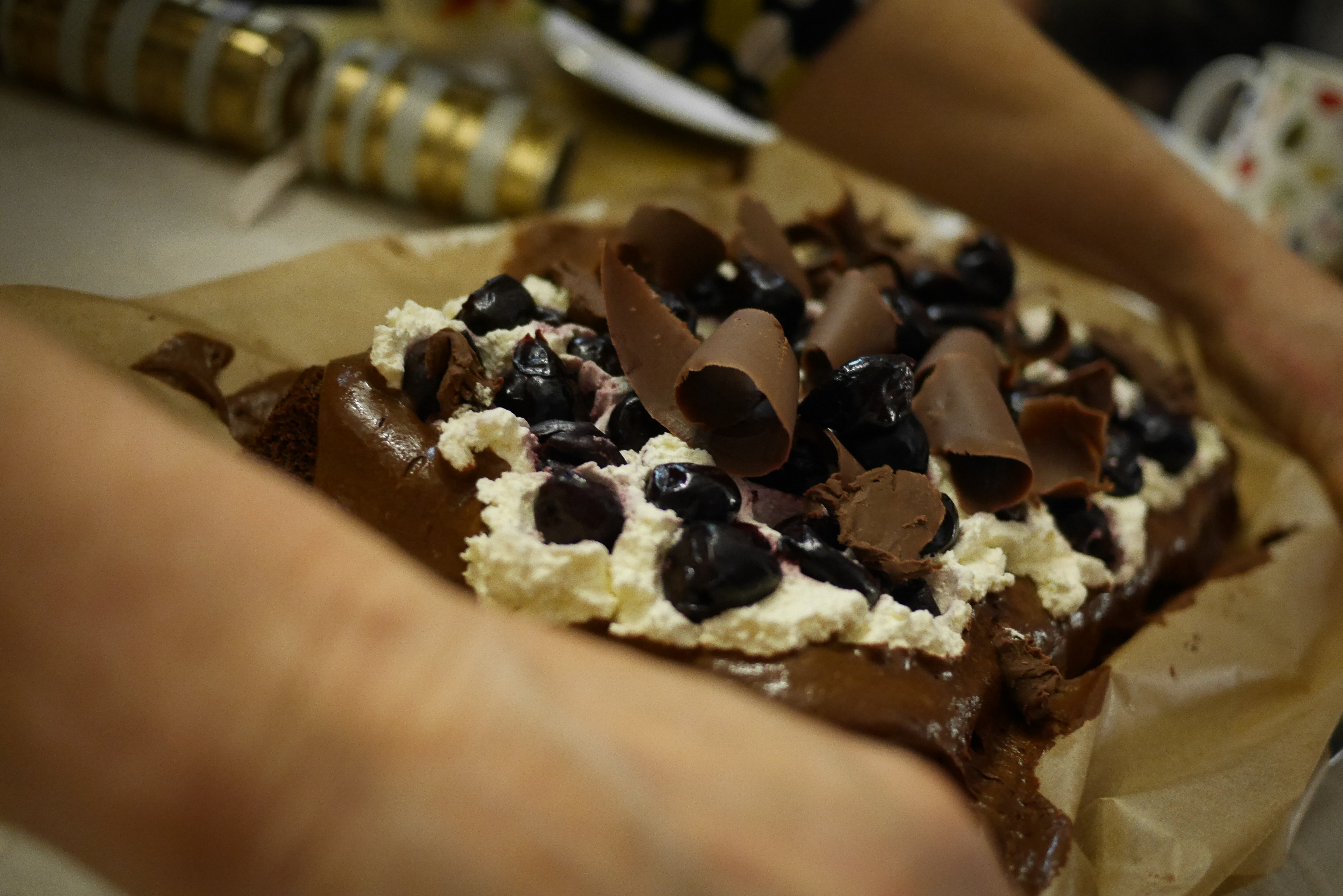 Happy New Year! Christmas flew by, and I barely talked about food at all. I’ve been so distracted working on my first gaming video the writing side of things has fallen by the wayside. But fear not! I am back in business. I did a reasonable amount of cooking this year, though the dessert was not as ambitious as the Charlotte Royale of last Christmas. In the days leading up to the main event, I had been clearing out Newforge Studios HQ, and trying to restore order. Consequently, I had barely spent any time thinking about what to make for dinner. I ended up picking a few dishes out of a cooking magazine, and a few from other sources. Mum was captivated by the idea of a black forest roulade, so that became the Christmas dessert of choice, even though nothing had been prepared in advance. This is never ideal, as I had finished the Charlotte Royale by Christmas Eve, but it would have to do. Dinner wasn’t till much later this Christmas, so there was plenty of time to put together a showstopper of some sort.