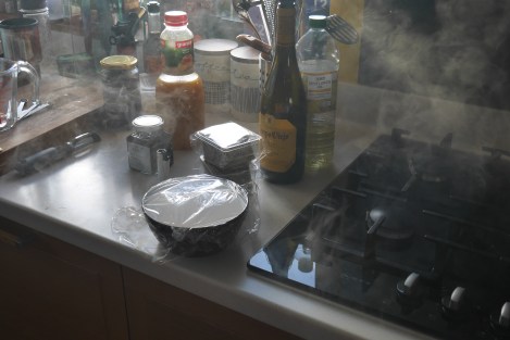 Attempting smoked scrambled eggs – only a small fire was ignited in the process