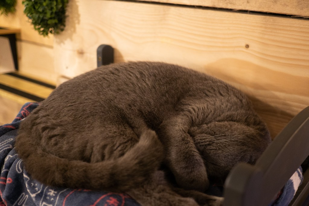 After entering through the tiny lobby, and being read the rules, we were greeted with a surprisingly large space with several different areas. You can book time in 30 minute slots, and the price of entry includes non-alcoholic drinks. And cats, of course. They even screen films and run other events.