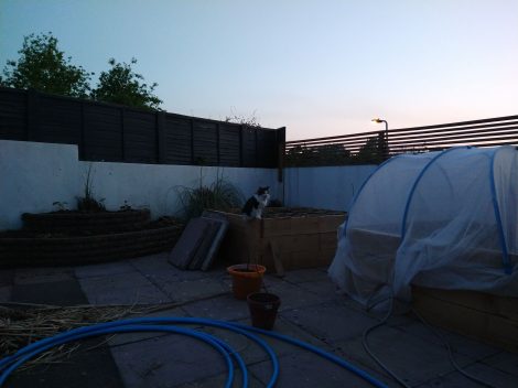 I made the mistake of planting out the seedlings I started in the conservatory a little early without hardening off, and not having a crop covering. I have since built hoops and covered them with horticultural fleece after recommendations from my brother. They went into shock a little at first, but they’re well established now. Not surprising considering how warm it was in the conservatory – over 35 degrees Celsius.