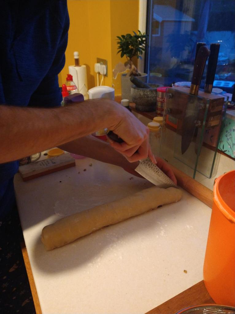 After a burst of enthusiasm in the early to mid lockdown days (coinciding with the Great Home Baking Rush of 2020), my baking spree cooled off. Most of my efforts at that time were concentrated on bread (sourdough, the word of the year) but this time I turned my attention to sweet things. First off with triple chocolate brownies from a Jane’s Patisserie recipe and then a chocolate babka as seen on the Great British Bake Off. I was only vaguely aware of babka as a concept before seeing it on TV, but it’s going to become a house favourite here. A babka is a sweet braided bread which originated in Jewish communities in Poland, made with an enriched dough. Babka can have a range of fillings including chocolate, nuts, cinnamon and fruit. I cut a few corners with the recipe as there was no dark chocolate in the house (I substituted milk with hazelnuts) and I swapped out the roasted hazelnuts for chopped walnuts and pistachios. The filling almost didn’t work as melting the chocolate, butter and sugar left me with a sludgy mess which refused to turn into a beautiful velvety smooth homogenous mix. Adding the cocoa powder helped somewhat, but it didn’t matter to the end result as it still tasted delicious. It did make the braid more difficult though as the layers didn’t stick together so the whole thing had to be handled with care.