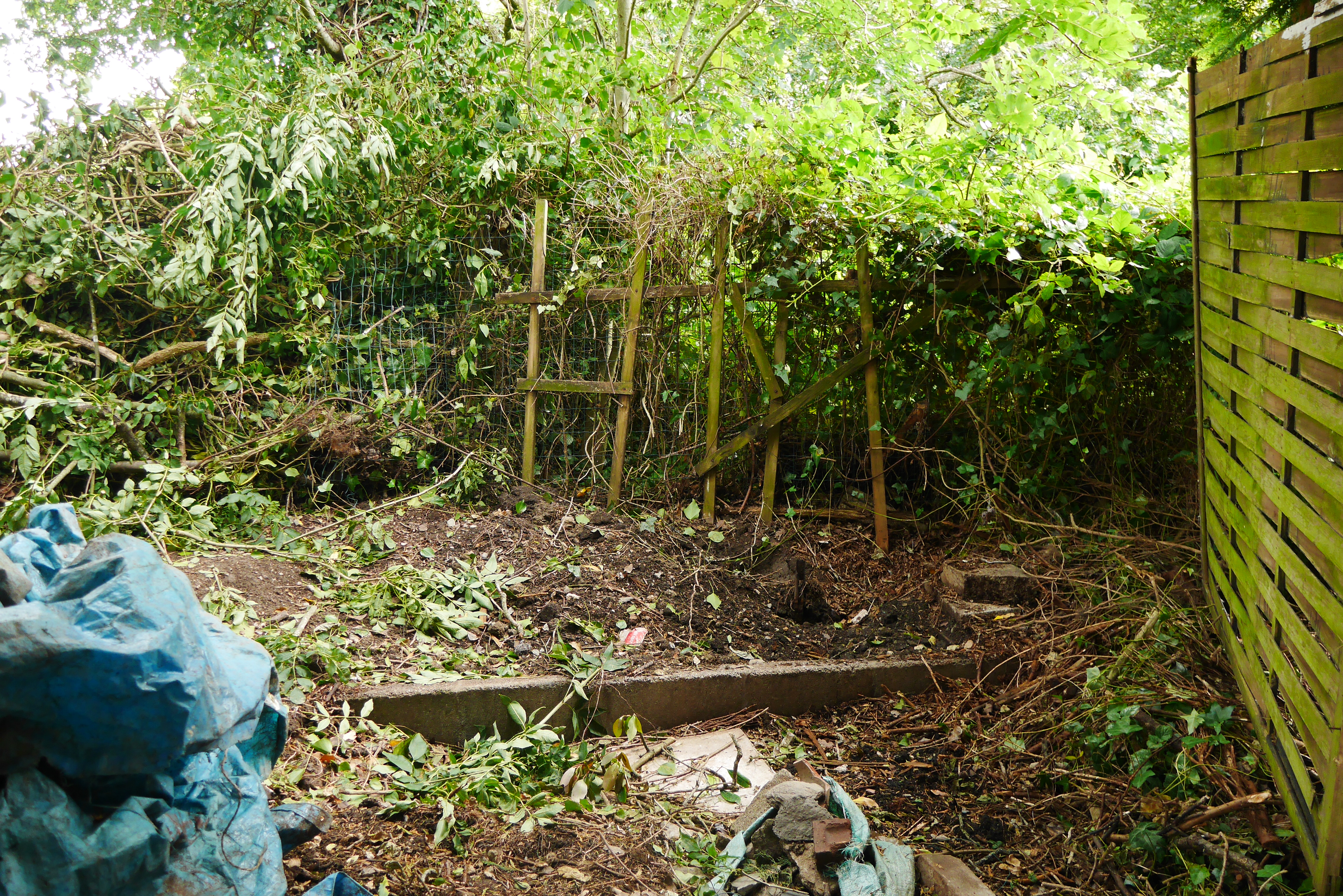 A portion of the garden appeared to be used as a dump by the previous homeowners with all sorts hidden by undergrowth. Concrete blocks, slabs, old fencing and even London bricks which may have originated from a local foundry. The space is now destined to house a multi-compartment pallet compost bin when I can get hold of the raw materials.