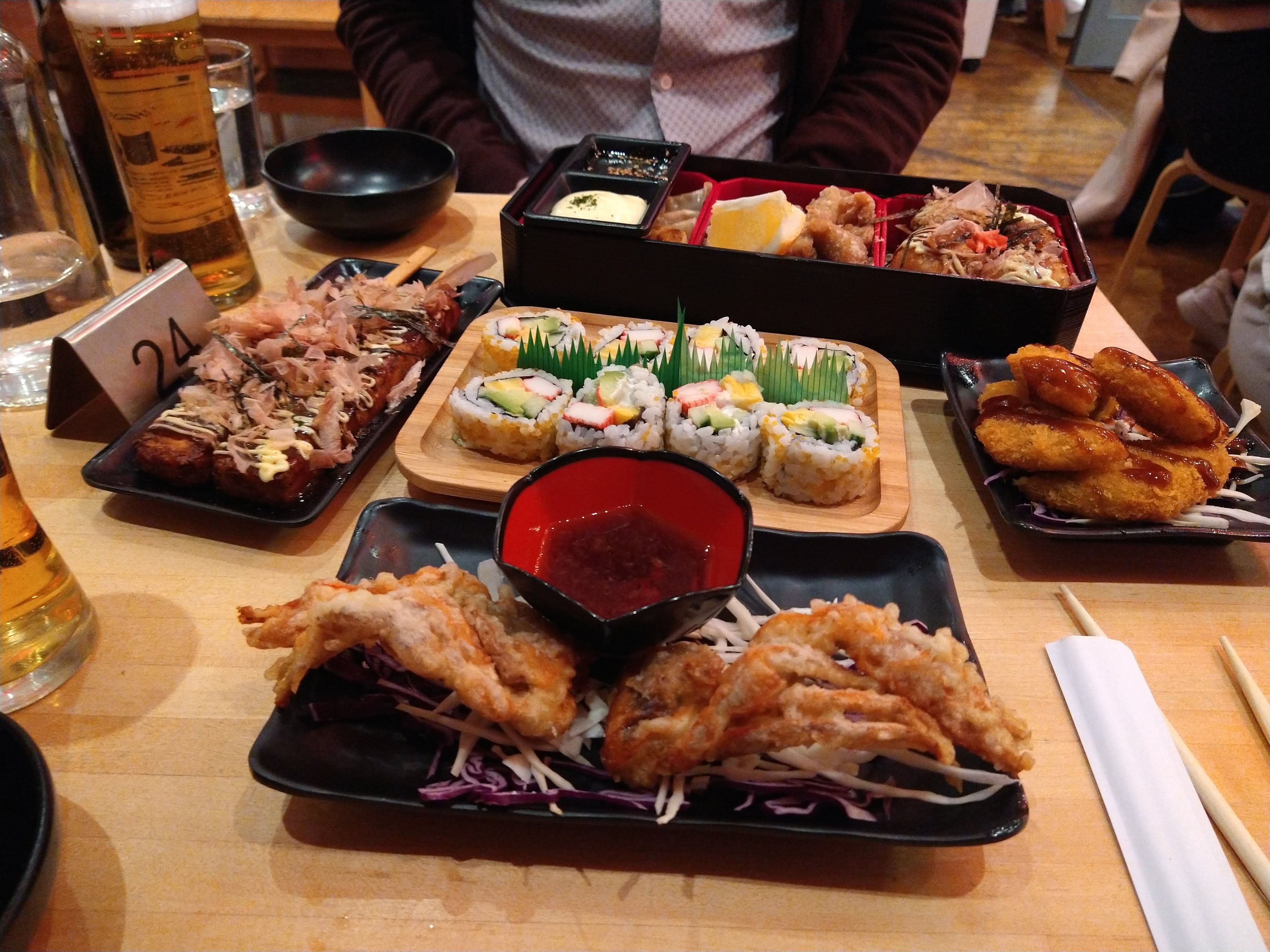 Back to Bristol. In a way, the naming is a bit silly. It’s the equivalent of moving to Tokyo and opening a traditional English pub called “Pub”. Having said that, that’s exactly the kind of thing that might work in Japan. I digress. The restaurant was buzzing and we just about managed to get a table in the marquee outside sheltered from most of the elements. The menu looked promising with classics such as yakitori (grilled meat skewers), takoyaki (deep fried dough balls with octopus), gyoza (Japanese dumplings), okonomiyaki (a kind of pancake hailing from Osaka and Hiroshima) and a whole raft of sushi options. We ordered a range of dishes including soft shell crab tempura which has been on my “to eat” list for a long time.