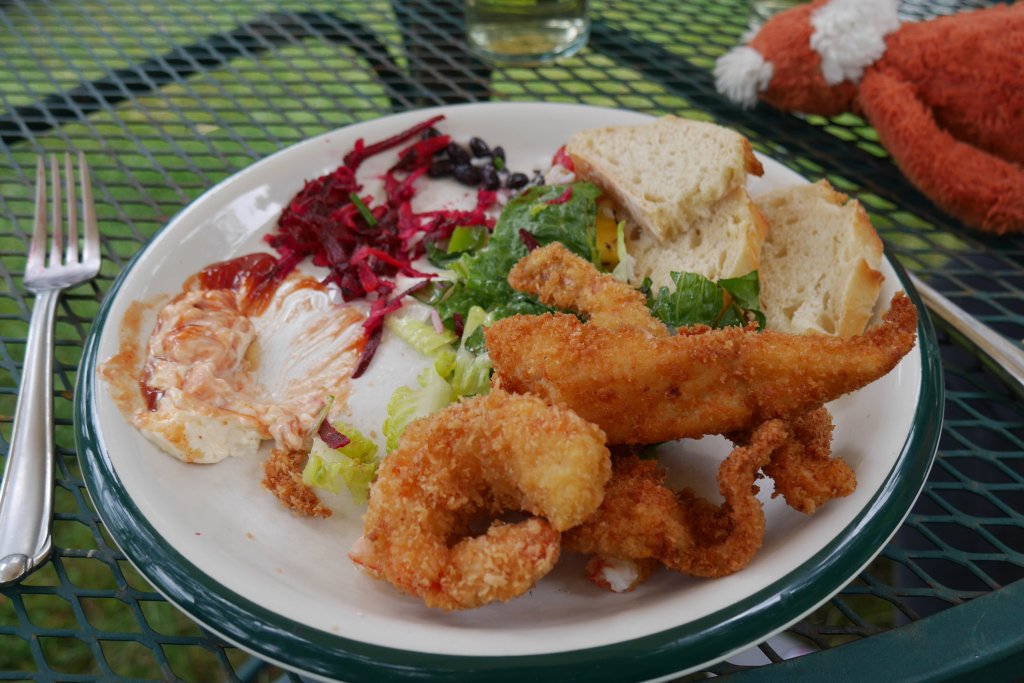 We spent one evening being treated to a cook-out. More specifically, a fish fry up with razor clams, Alaskan cod, oysters and shrimp. One of our Whidbey neighbours kindly invited us to sample the fried delicacies and my mum brought the sides. Cooking and eating in the (tamed) wilderness overlooking the water is my idea of paradise, and the food lived up to expectations as we sat by the firepit watching the logs crackle. A ukelele was produced and handed to me (I had been learning a few chords on mum’s basic one), so it was time to play “Over the Rainbow”, or more specifically Israel Kamakawiwo’ole’s cover. After a while spent butchering the classic I was casually informed that the uke I was holding was worth about $2000. Somehow I had gone from a $70 basic model to that one. I treated it a little more gingerly after that.