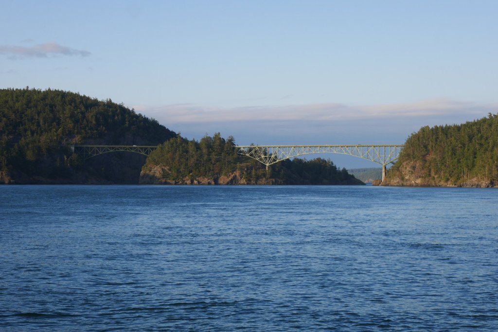 It’s a tricksy place. Deception Pass was aptly named by George Vancouver (one of the illustrious “George place-name” brigade) as he was fooled into thinking Whidbey Island was a peninsula. Now it’s traversed by an impressive set of bridges and provides access to the North of the island. We had a walk around the surrounding park land and after admiring the vista, we stopped by an 850 year old tree for a hug.