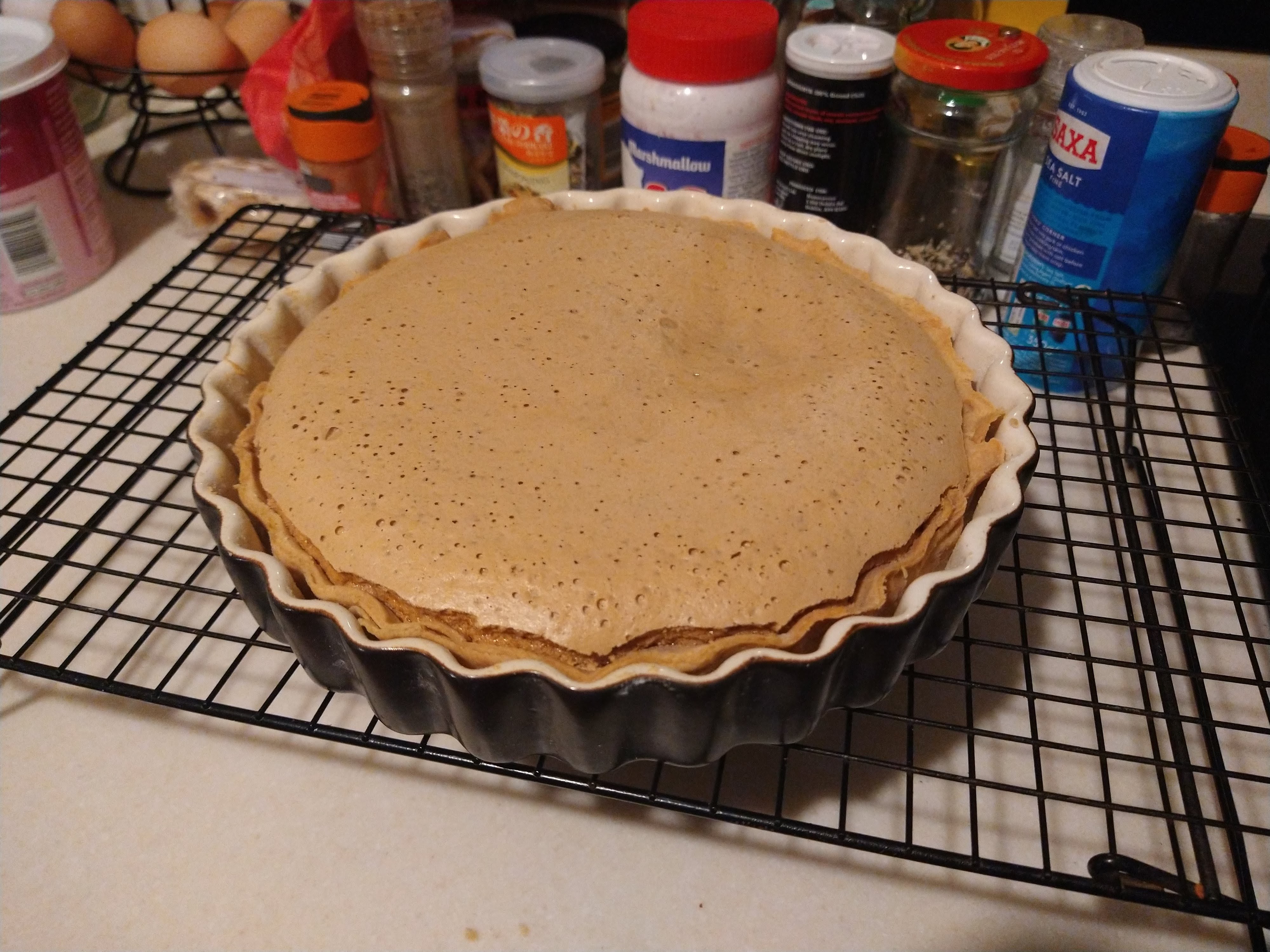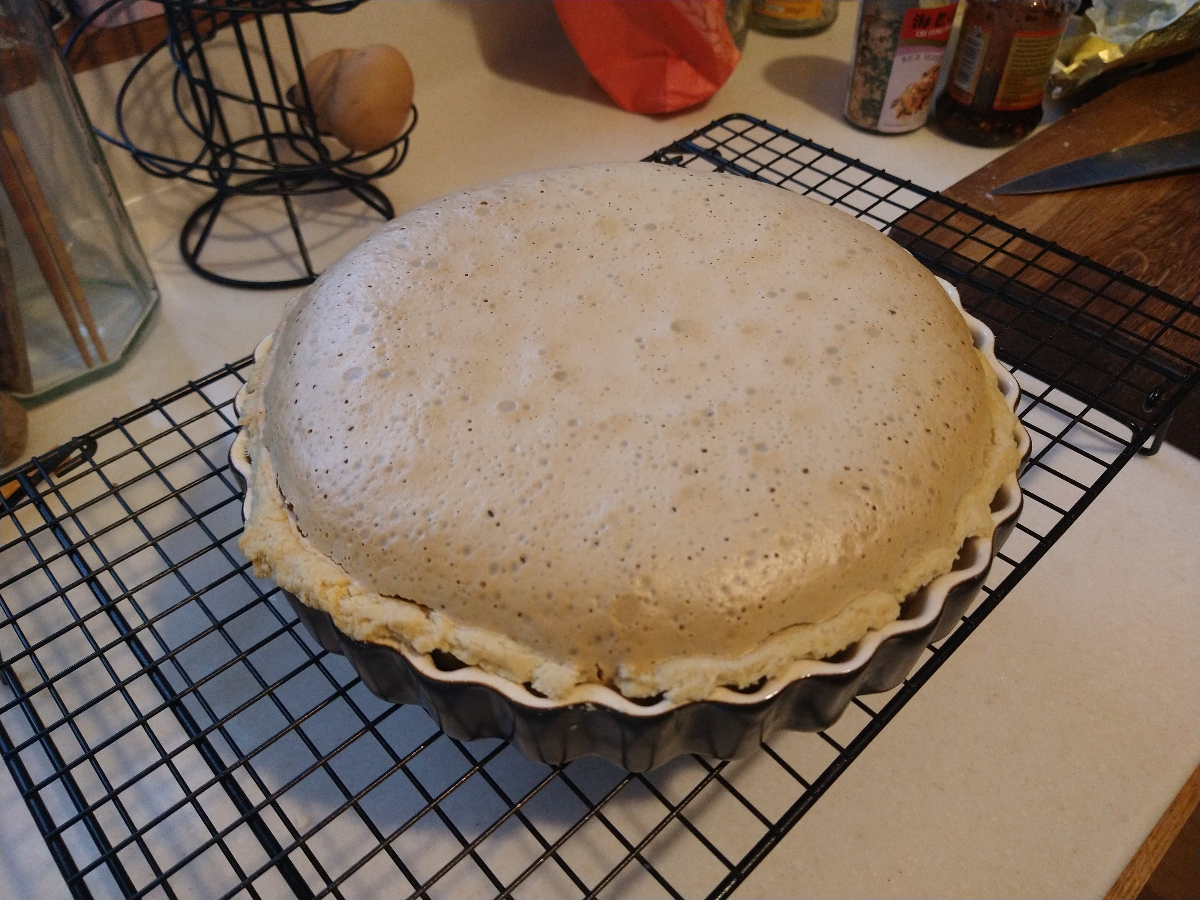 Following a discussion with a friend of ours who started life in Kent, I set out to try Gypsy Tart, a classic Kentish dessert. I hadn’t made anything like it before, and was intrigued by the simple concept. A pie crust, filled with a mixture of evaporated milk and brown sugar, and baked in the oven. The end result is a sweet (incredibly sweet) mousse on a shortcrust base. On its own I could take it or leave it, but with a dollop of whipped cream it works rather well.