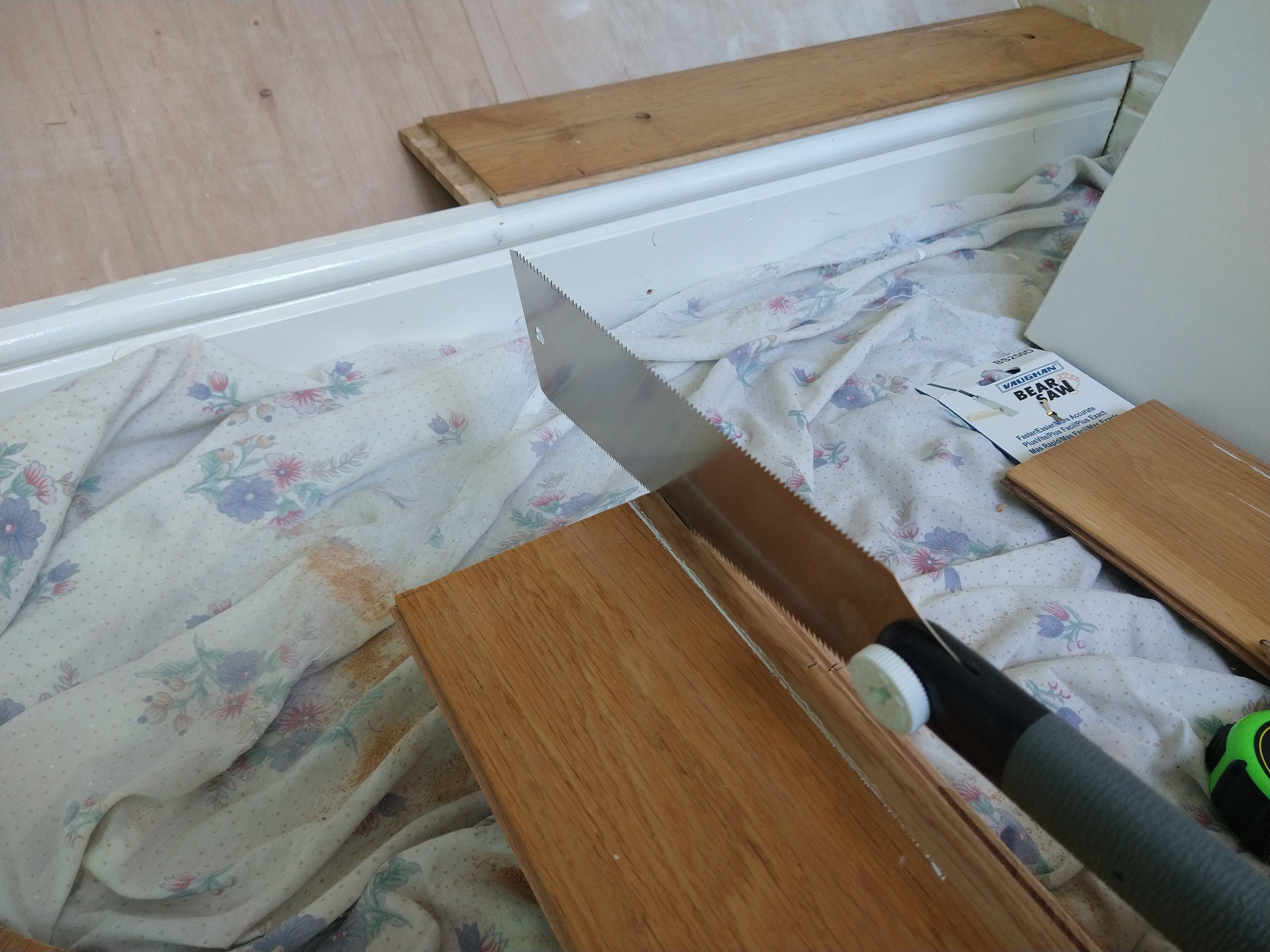 I have limited time to squeeze the work in, so I decided it was all getting too easy and I should introduce my Japanese saw to my thumb. I was trying to shave a board down to size for the first step on the bulkhead and in my haste, slipped and caught the side of my thumb. There is no denying how sharp those blades are; I’m just glad it was a glancing blow although it still bled profusely. I quickly transitioned into doctor mode and stopped the bleeding with firm pressure for quite a while (in the region of twenty minutes) then arranged a plaster to keep providing some pressure. Thankfully that was the worst of the drama, and it has been more frustrating than problematic. Lesson learned.
