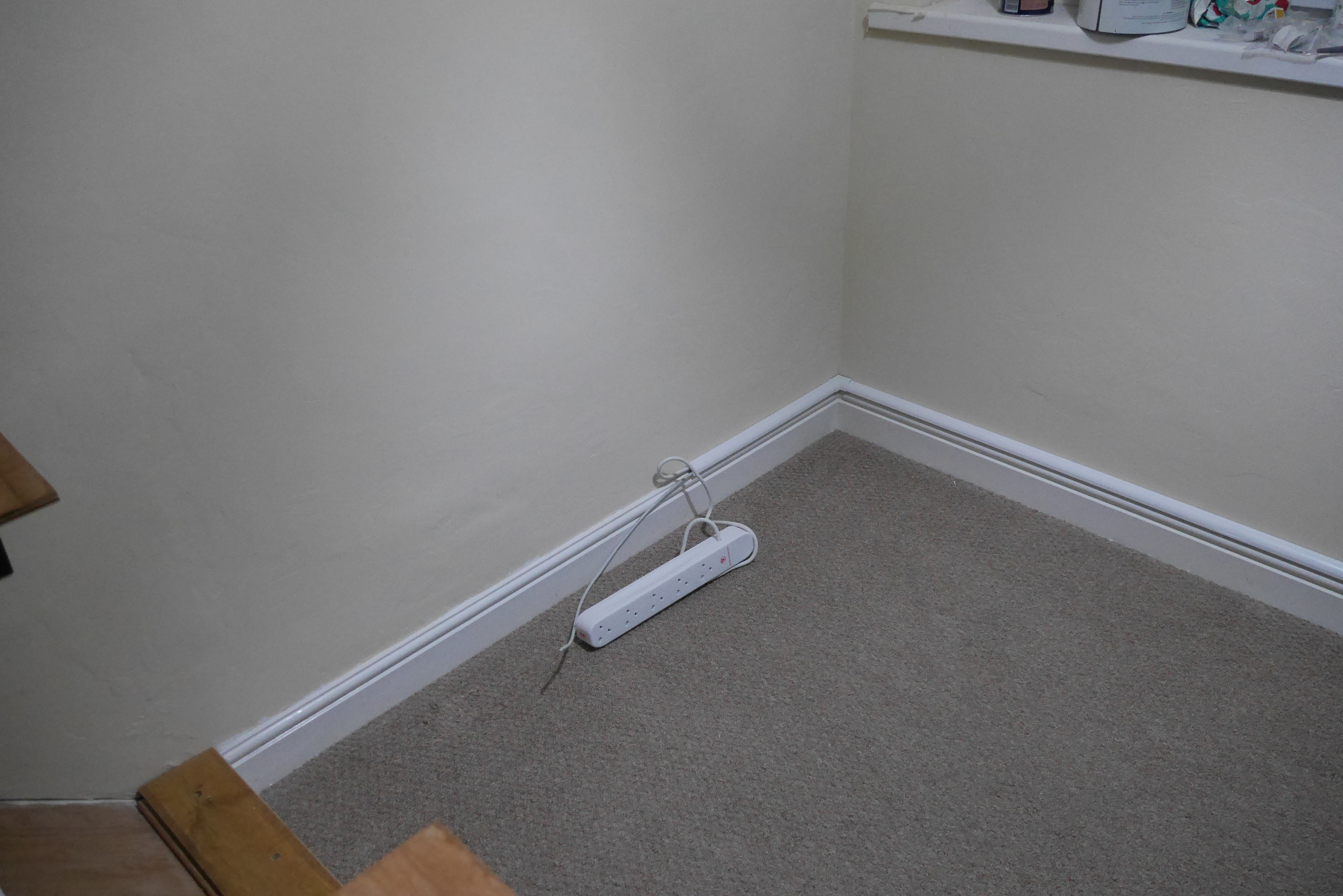 I’ve been putting the finishing touches and fitting the final shelves this week. There are still a few niggles to sort out including a few paint touch-ups, fills and network cable termination to do. I have put down conduit above the skirting board though to conceal the trailing socket cable and network cable.