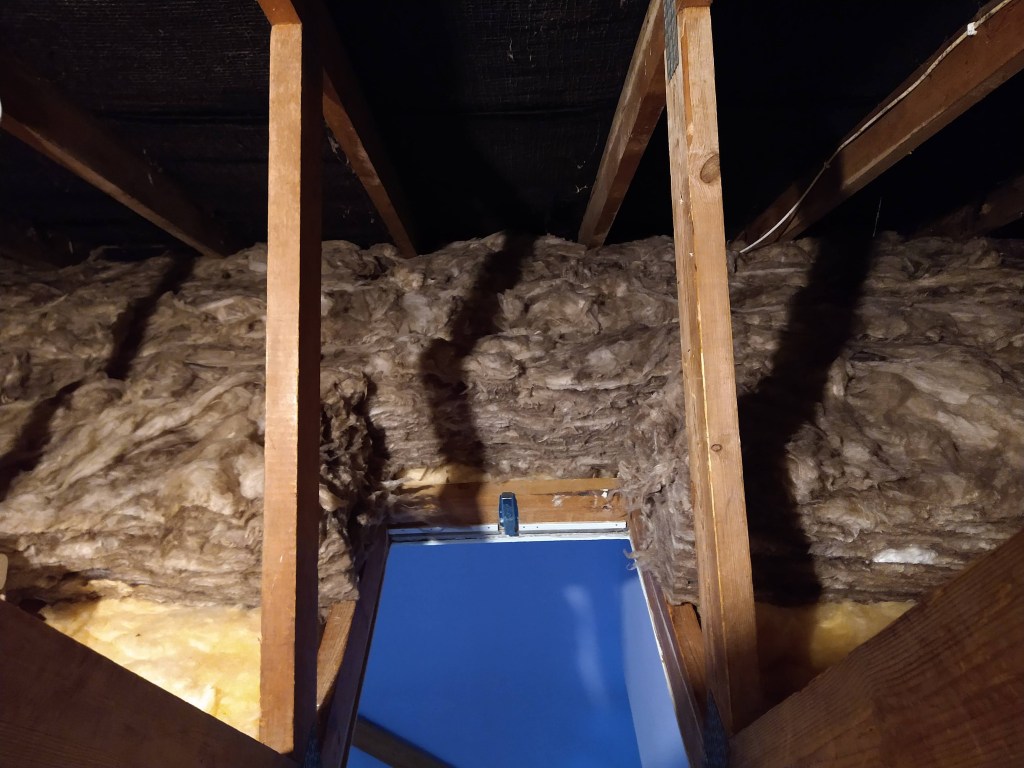 The first job was insulating the sides and the area behind the water tank using the old boards as support, then removing the boards to fit the loft legs and insulation around them. Wickes provided the materials in exchange for money, a system that’s really catching on these days.