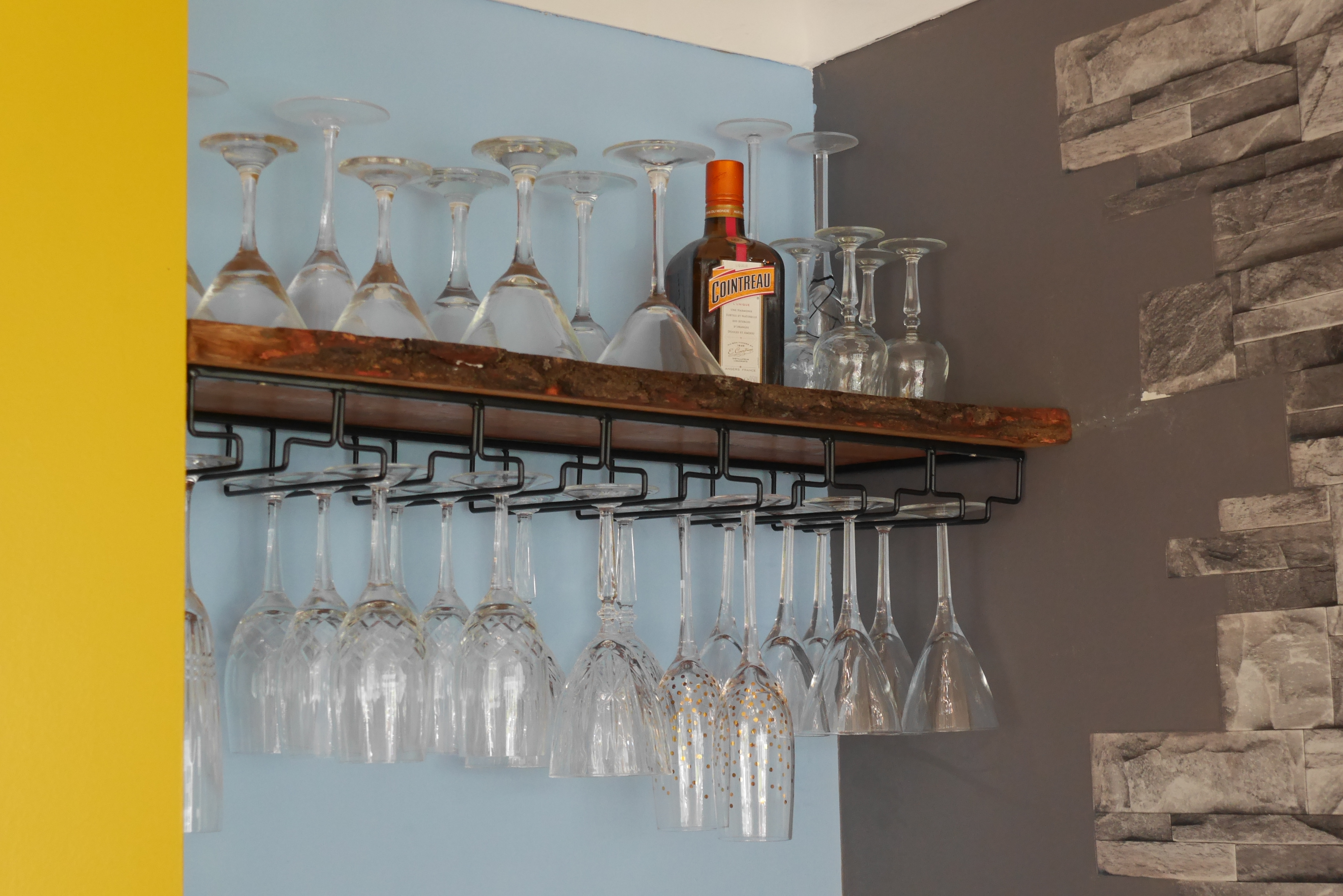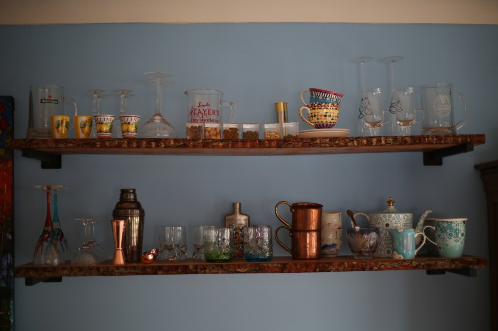 Although there’s less storage space than before, I really love the finished look. It’s great for showing off the unique pieces we’ve picked up over the years and they’re easy to access. An Old Fashioned out of a handmade Okinawan glass, anyone?