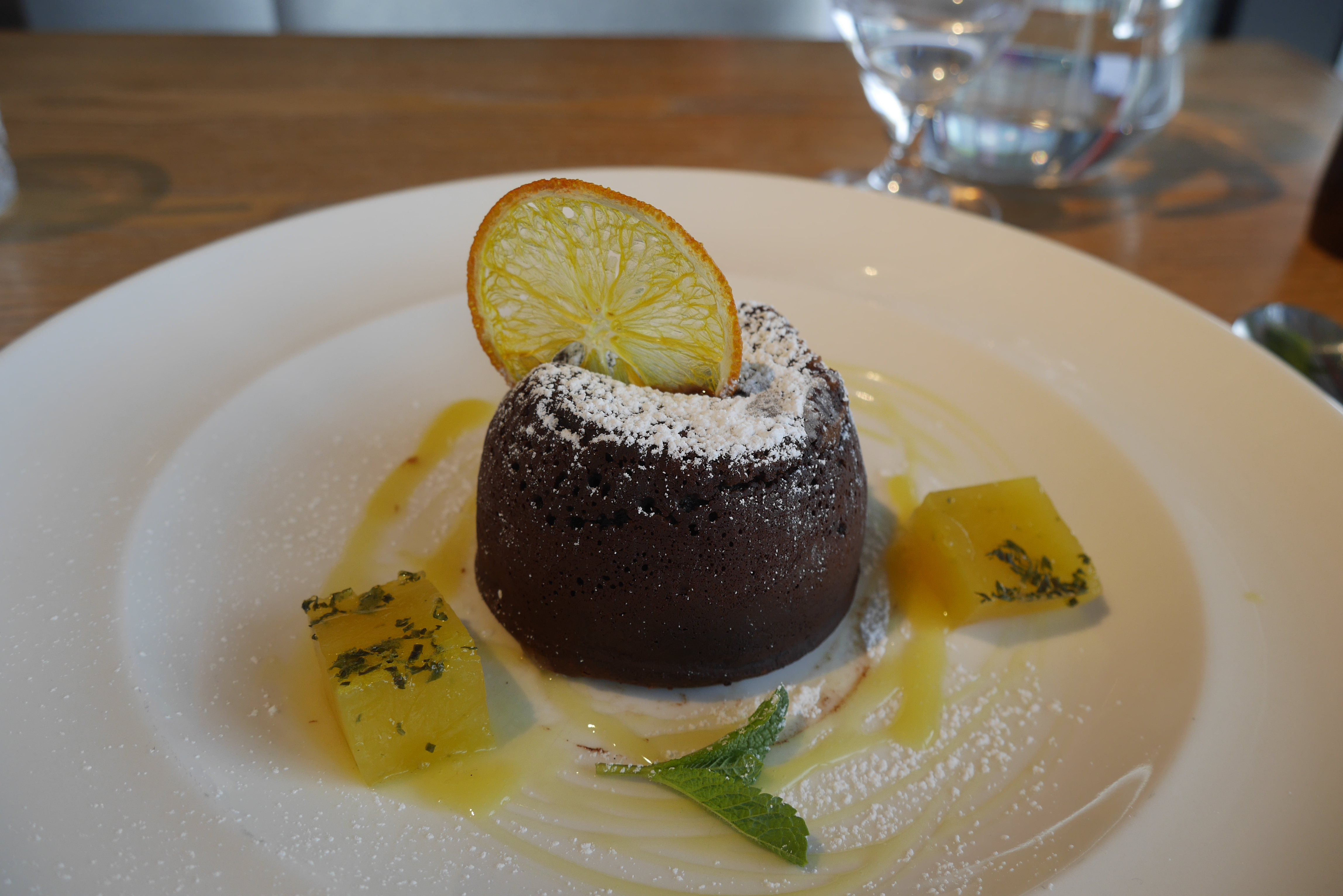 I was told the dark chocolate fondant had a lead time of 12 minutes which made for a nice break between courses. The fondant was perfectly cooked and oozed out as soon as I broke into the centre. The orange and mint jelly accompaniment was also delicious. I have been disappointed in fondants the last few times I’ve had them, but this really was an excellent example.