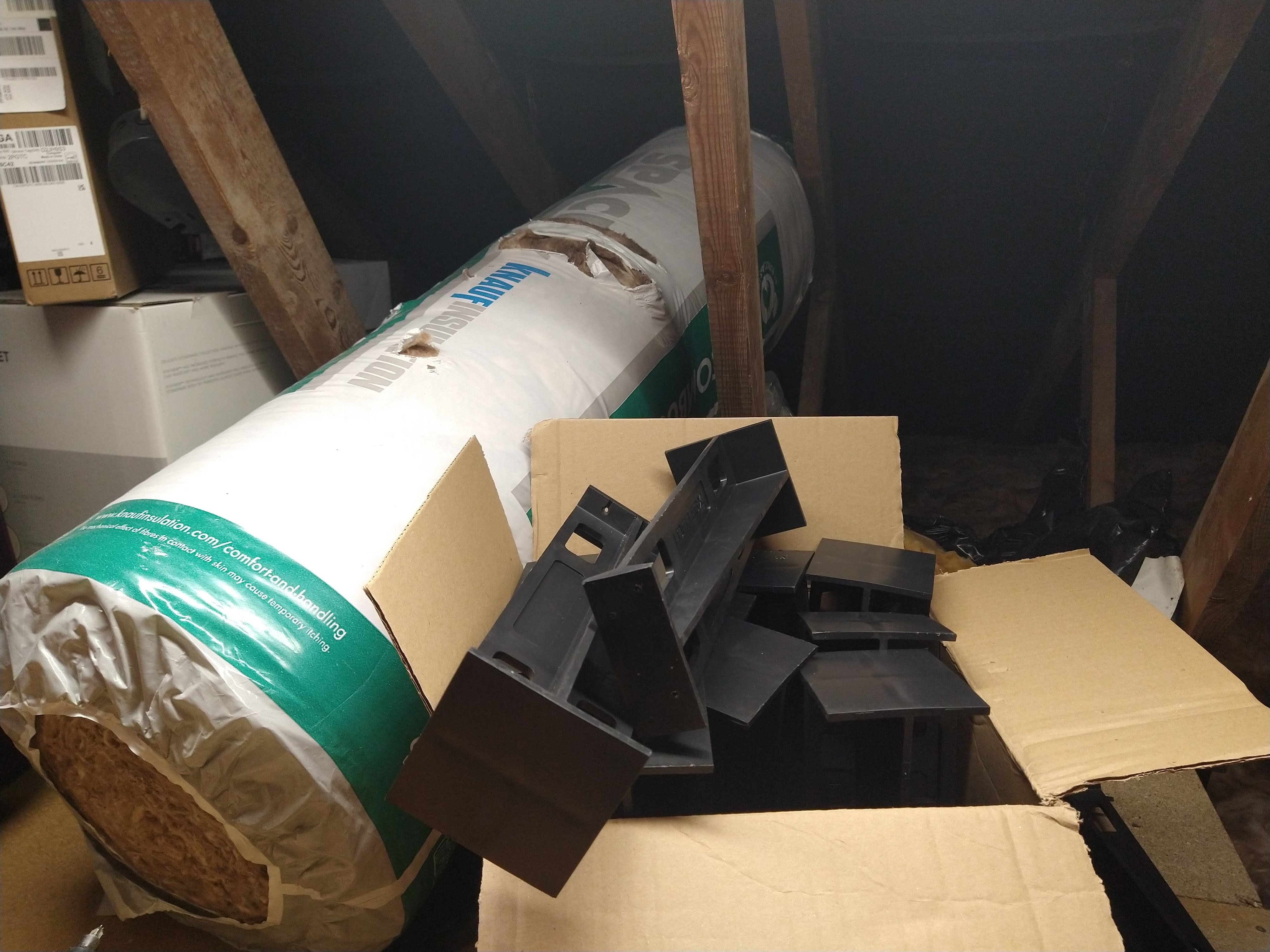 It’s the loft sequel you’ve all been waiting for. Not all of you? Hmmm. Some of you? You may not have been holding your breath for this one. Last November I used Loftlegs (the XL version) to board out half of my loft with space for another 200mm of mineral wool insulation. The other half of the loft was blocked by the late cold water storage tank. Once the heat pump was in and the unvented hot water cylinder installed in the workshop, there was no need for the old tank. The tank was an OsmaGlass fibreglass model so, one jigsaw blade later, it was out of there. Suddenly I had a whole other potential storage space to work with.