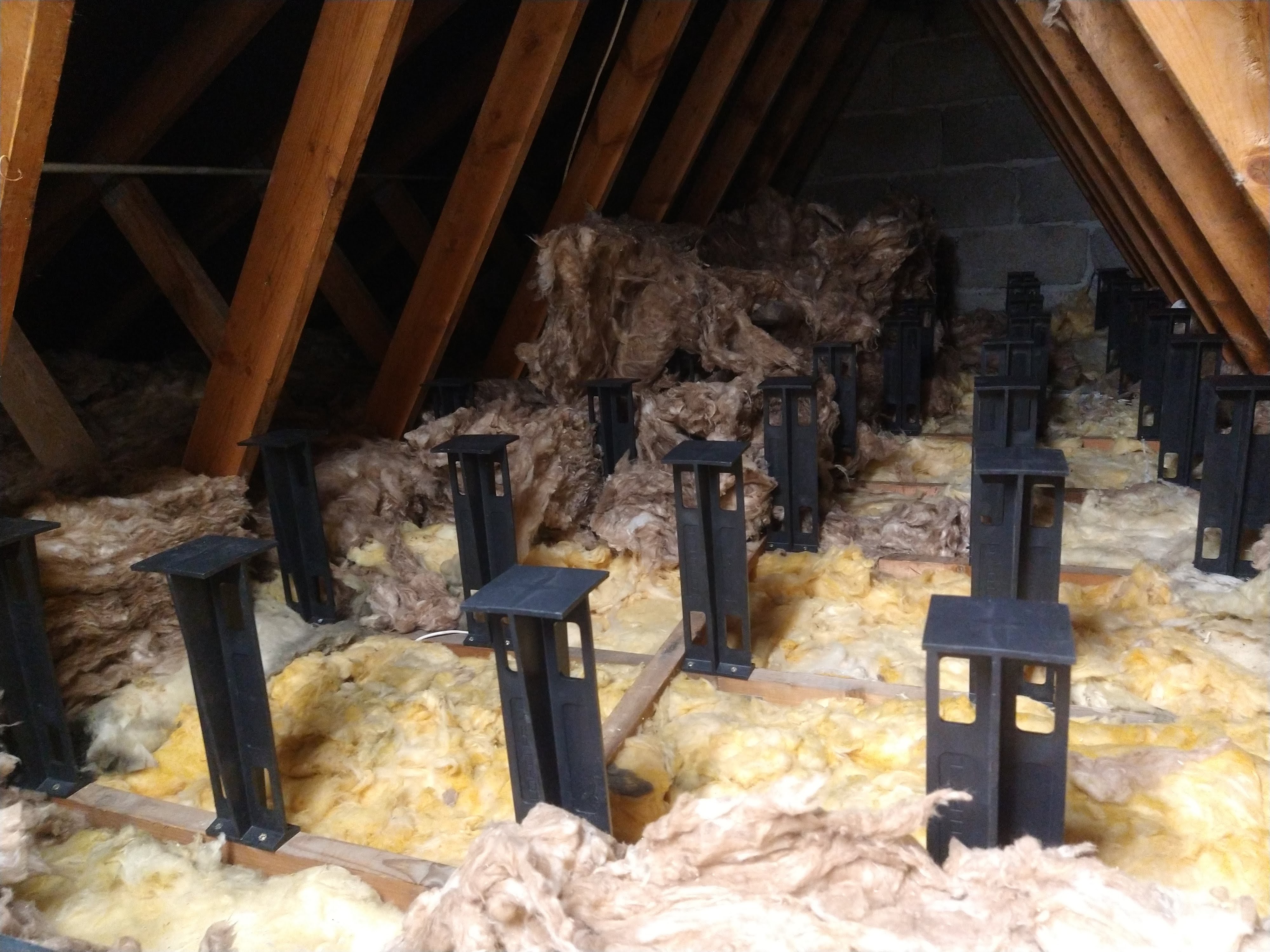 The next step is to get the second layer of insulation down over the Loftlegs, then lay and screw down the boards which form the new deck. Once you get the hang of it, using Loftlegs is a straightforward process and allows you to achieve high levels of insulation without completely losing your storage space. Our loft is quite tight for space which isn’t ideal, but any storage we can add is more than welcome.