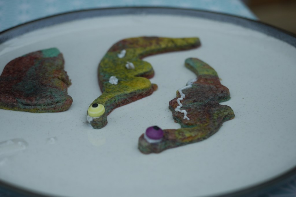 The carving pumpkins are grown for size rather than flavour but that didn’t stop me from trying. I quartered a pumpkin, scooped out the seeds and stringy bits, and covered the pieces with foil before roasting for an hour then letting cool in the oven. Then I removed the skin from the pieces and blitzed the flesh until smooth.