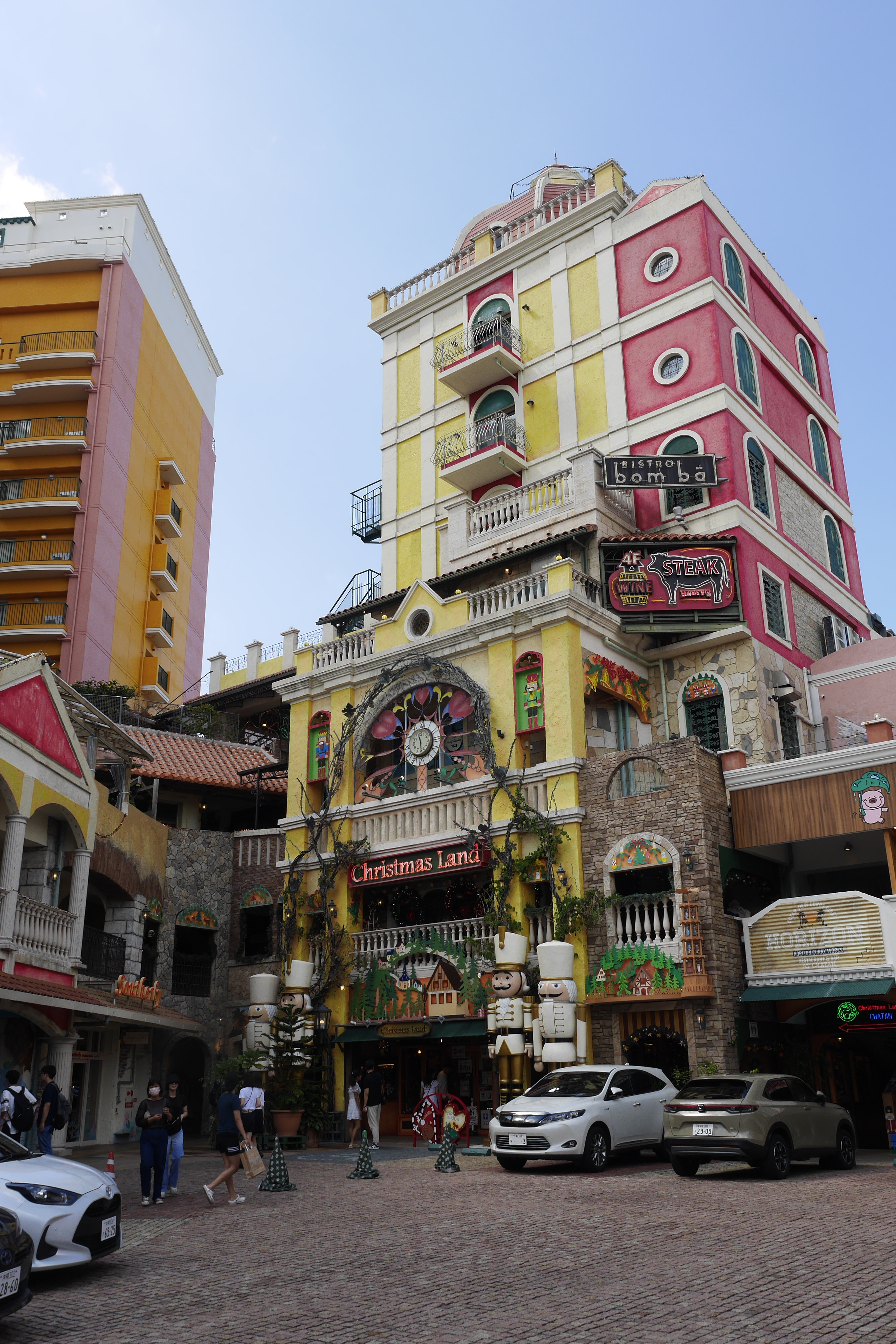 I digress. The American Village is just off the main road and perfectly located to entertain the American troops stationed on the island. There is a massive car park next to the Aeon mall which gives easy access to the rest of the attractions. The American Village feels a little like a Disney construction with an eclectic mix of themed buildings housing cafés, restaurants, shops, and bars. There are a number of American chains including Red Lobster, and it’s quite a fun place to wander around and take in the sights. We stopped off at an Italian restaurant and had some rather nice pizza before doing a bit of shopping. There’s even a Christmas shop but we were a little terrified of bumping into anything because there was aggressive warning signage everywhere. It required a swift toddler removal too as the desire to touch expensive things was too great.