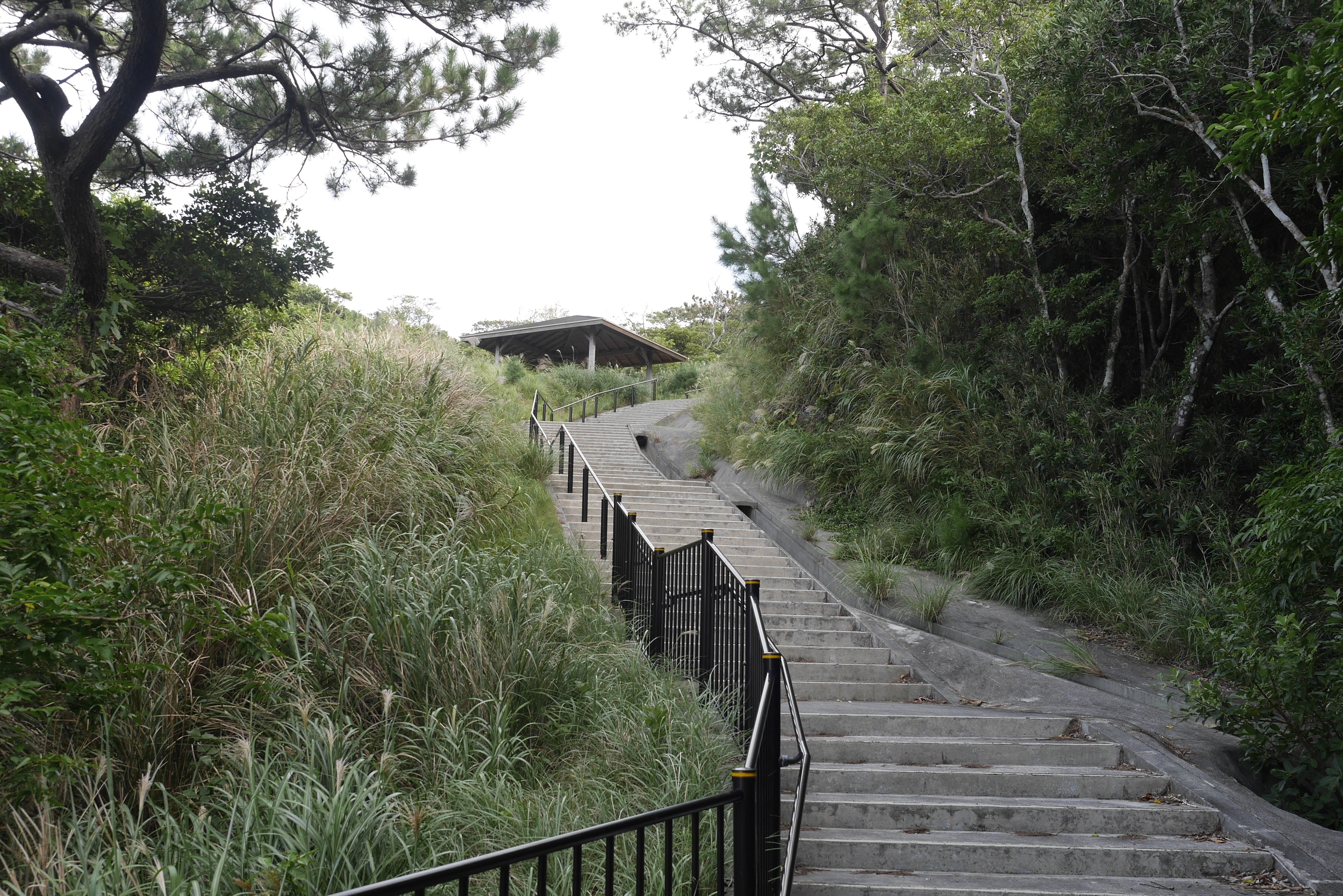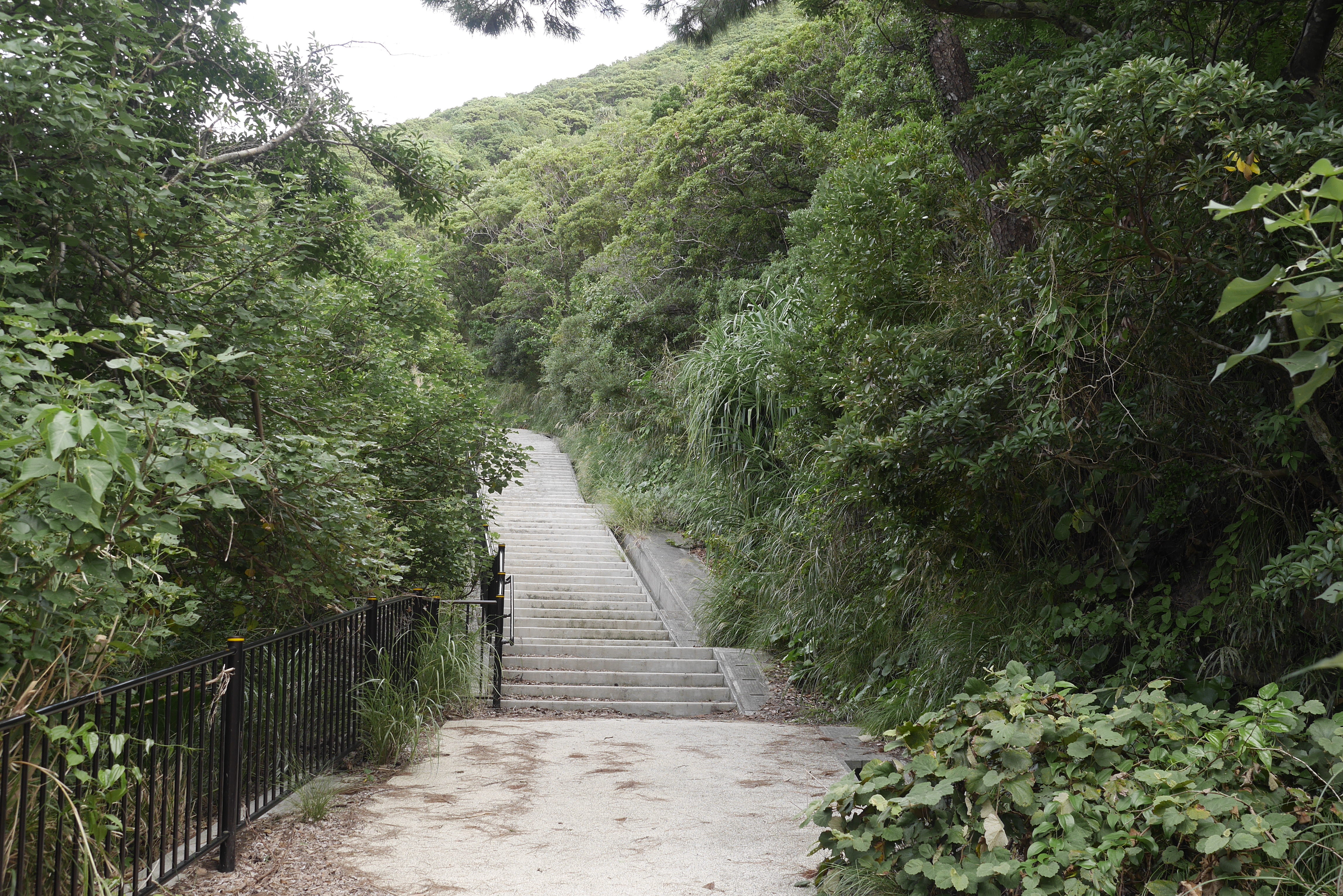 Walking around the coast it’s not hard to see why they call these islands “Kerama Blue”. The brilliant azure of the water is breathtaking. There’s plenty more exploring to do for now. At the other side of the bridge is where the path up the hillside begins. This isn’t any old sheep trail, of course. An immaculate concrete staircase waits for any intrepid travellers, complete with a safety rail. I didn’t encounter another soul along the length of the path.