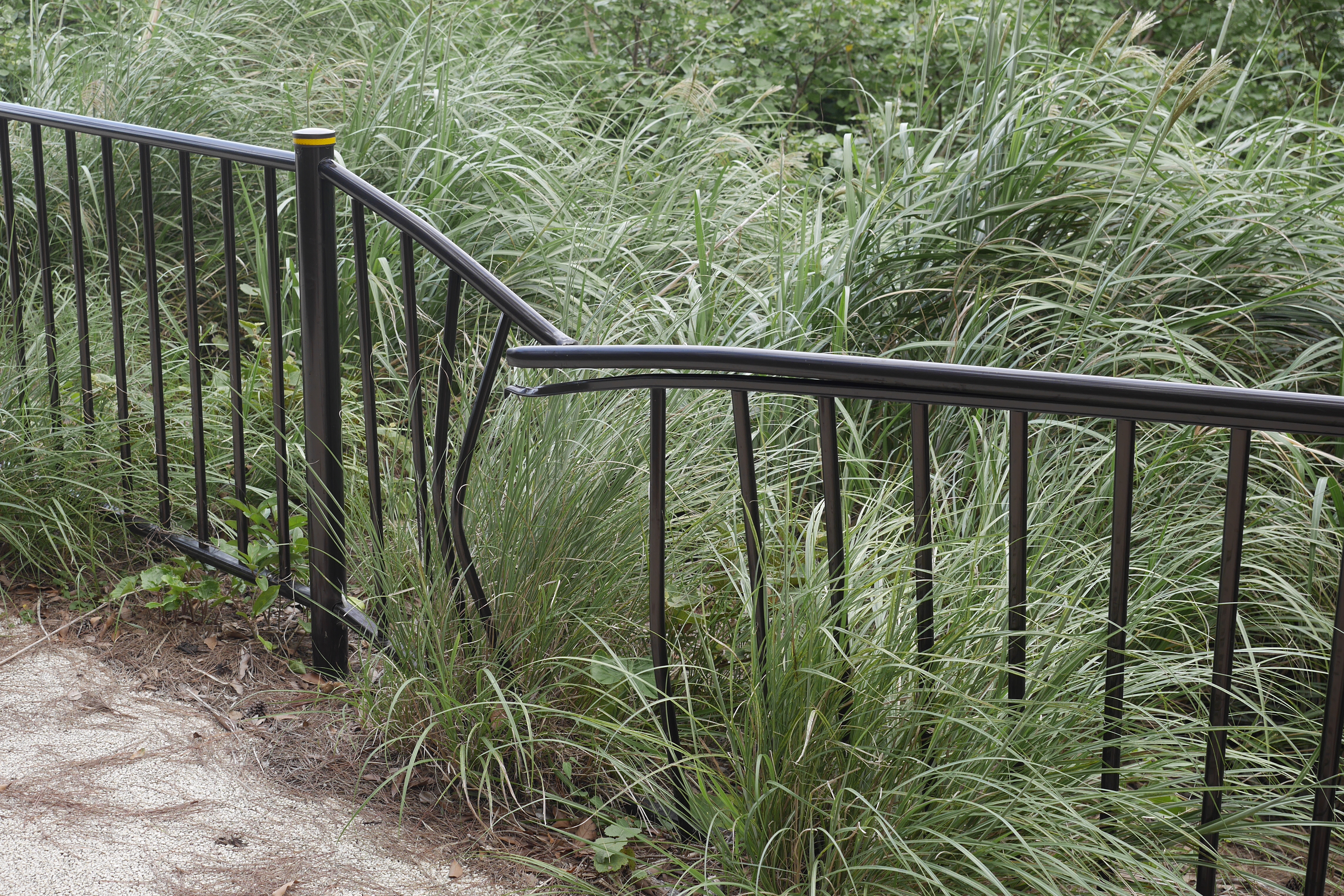 On a slightly disconcerting note, part of the way up the hillside some of the railings had been damaged. It was a little too reminiscent of Jurassic Park or Dino Crisis. What beast could have done this? There is very little vandalism around these parts. There are occasional deer, but it would have had to be a pretty beefy deer to do that damage.