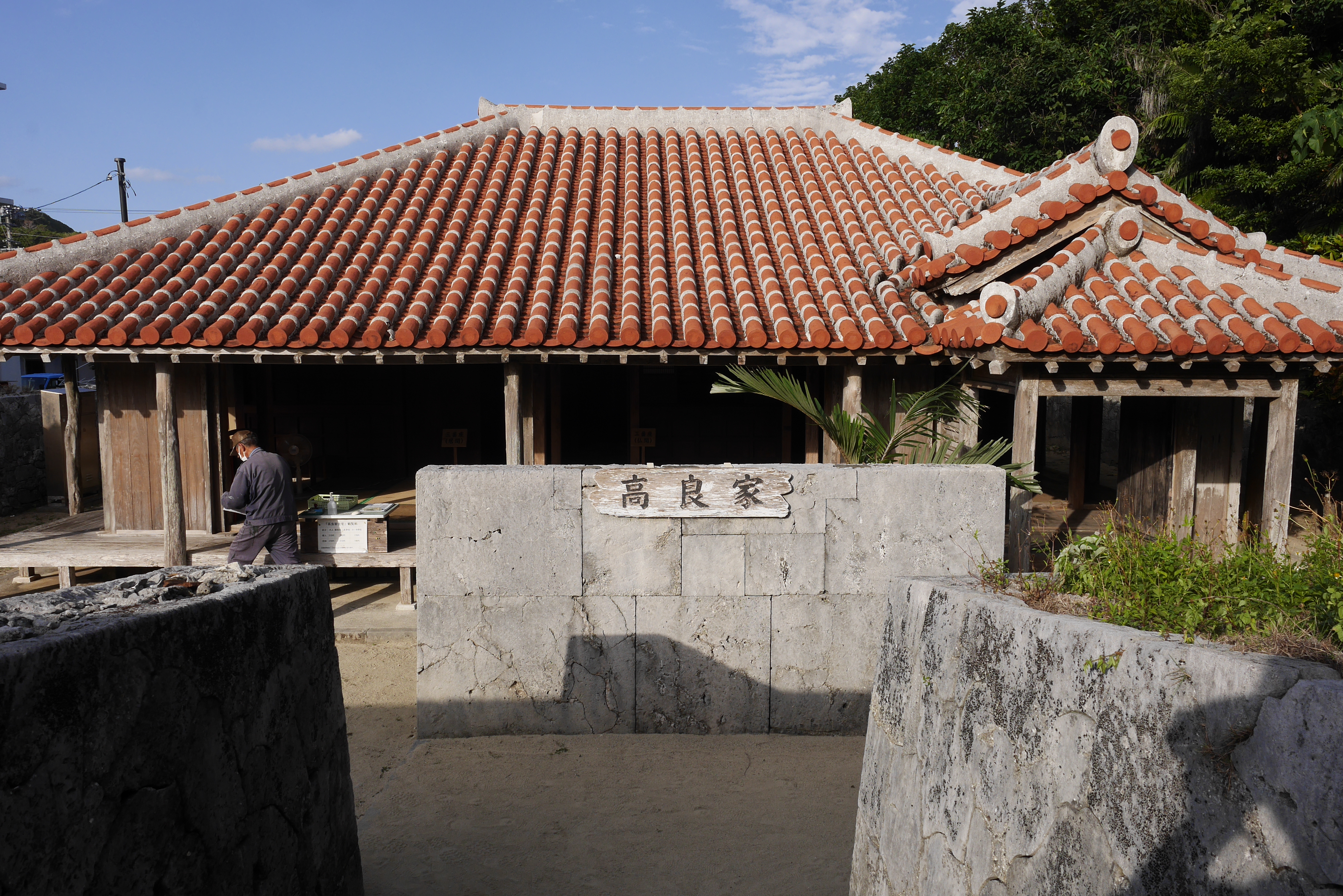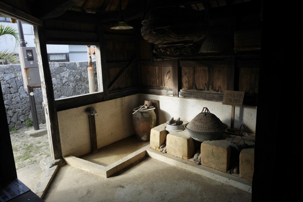 As I walked around the desert street(s) of Geruma hamlet in search of the historic property in the area, I came across only one other individual. An elderly man who half spoke, half gestured whether I was interested in seeing the Takara Residence. I wasn’t going to turn down this spontaneous invitation! This 19th century Okinawan household is surrounded by walls made of coral limestone, and was built for a clan who served as captains of the government boats around the Ryuku islands (source).