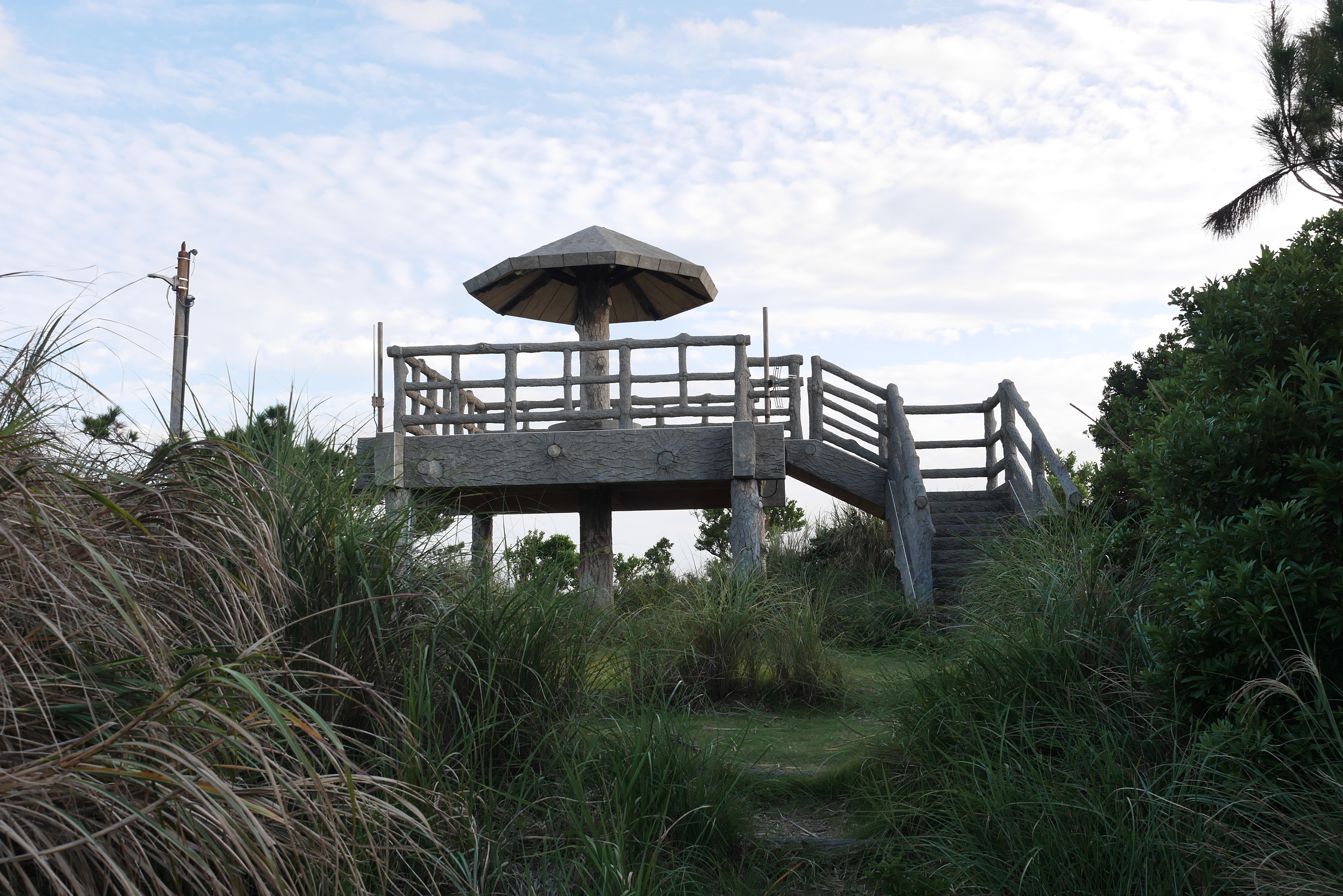 A walk further up the road brings you to the quaint Fukaji airport, which is a third class airport shared between the commercial sector and the Japan Self-Defence Forces. It is tiny, and the building was deserted when I visited to use the bathroom. I was hoping for a vending machine too but even that was too much for the most remote end of the island chain. This is another area that doesn’t look like people should be wandering about, yet there is a path leading up from the airport car park to an observatory.