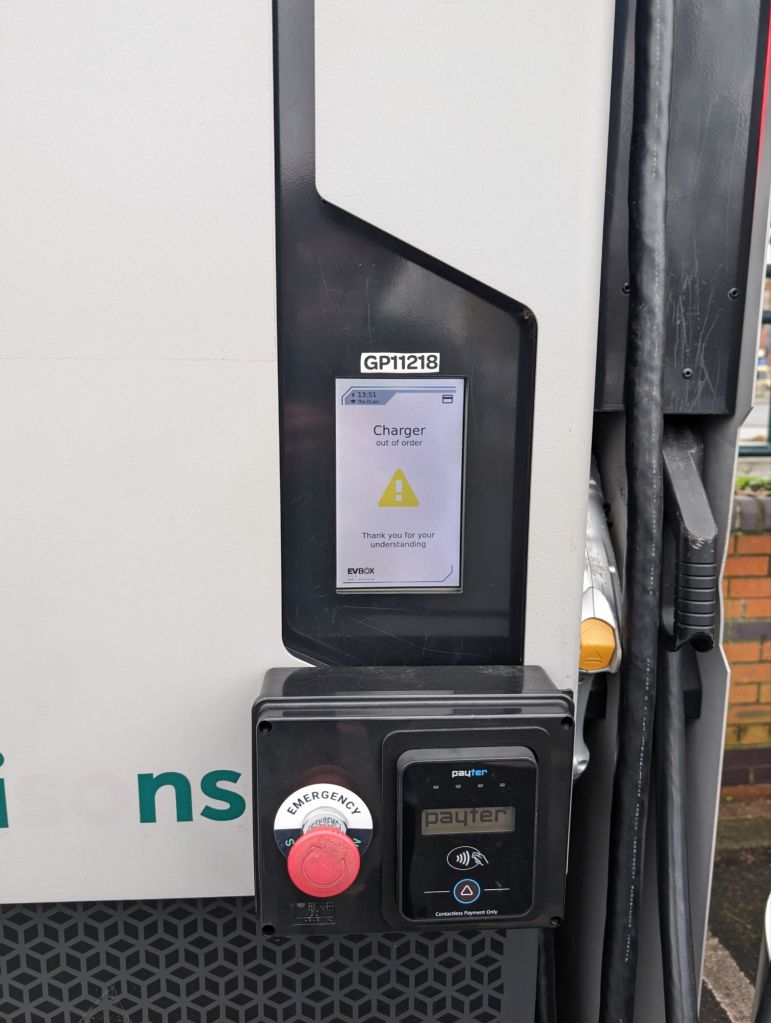 I managed to find a medium speed charger in Hereford which gave me enough juice to get to my final destination where I charged from a regular plug socket overnight. It did make me slightly concerned that I would be able to get enough charge to get back to Plymouth but that was a problem for the following day. A trip out to Birmingham airport and back to Hereford racked up another 112-ish miles. We stopped to use an InstaVolt charger by the airport, but again encountered an error initiating charging. Moving to another charger yielded the same error. After multiple chargers from different networks were causing problems, the fault had to lie with the car rather than the chargers.