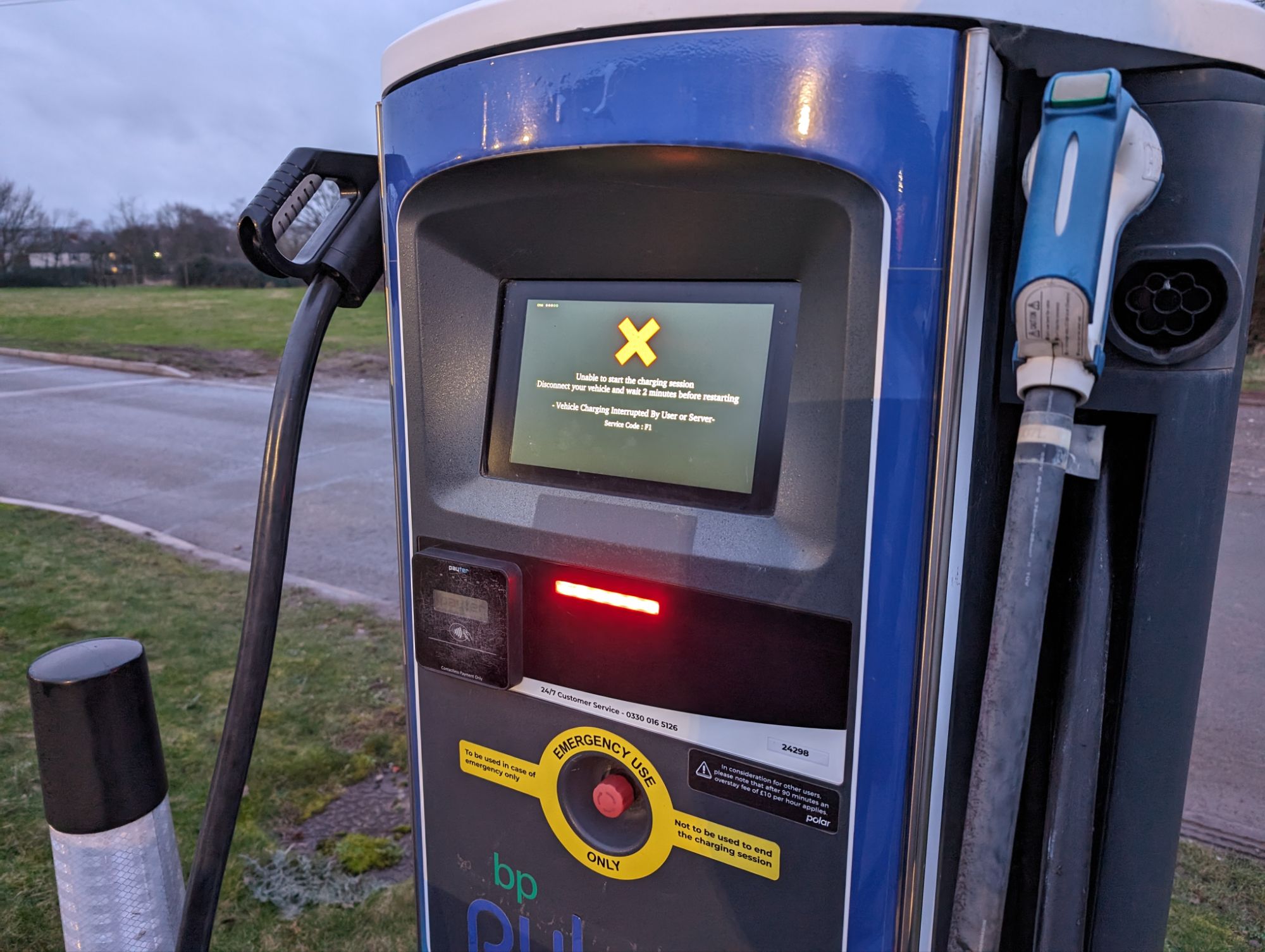 I managed to find a medium speed charger in Hereford which gave me enough juice to get to my final destination where I charged from a regular plug socket overnight. It did make me slightly concerned that I would be able to get enough charge to get back to Plymouth but that was a problem for the following day. A trip out to Birmingham airport and back to Hereford racked up another 112-ish miles. We stopped to use an InstaVolt charger by the airport, but again encountered an error initiating charging. Moving to another charger yielded the same error. After multiple chargers from different networks were causing problems, the fault had to lie with the car rather than the chargers.