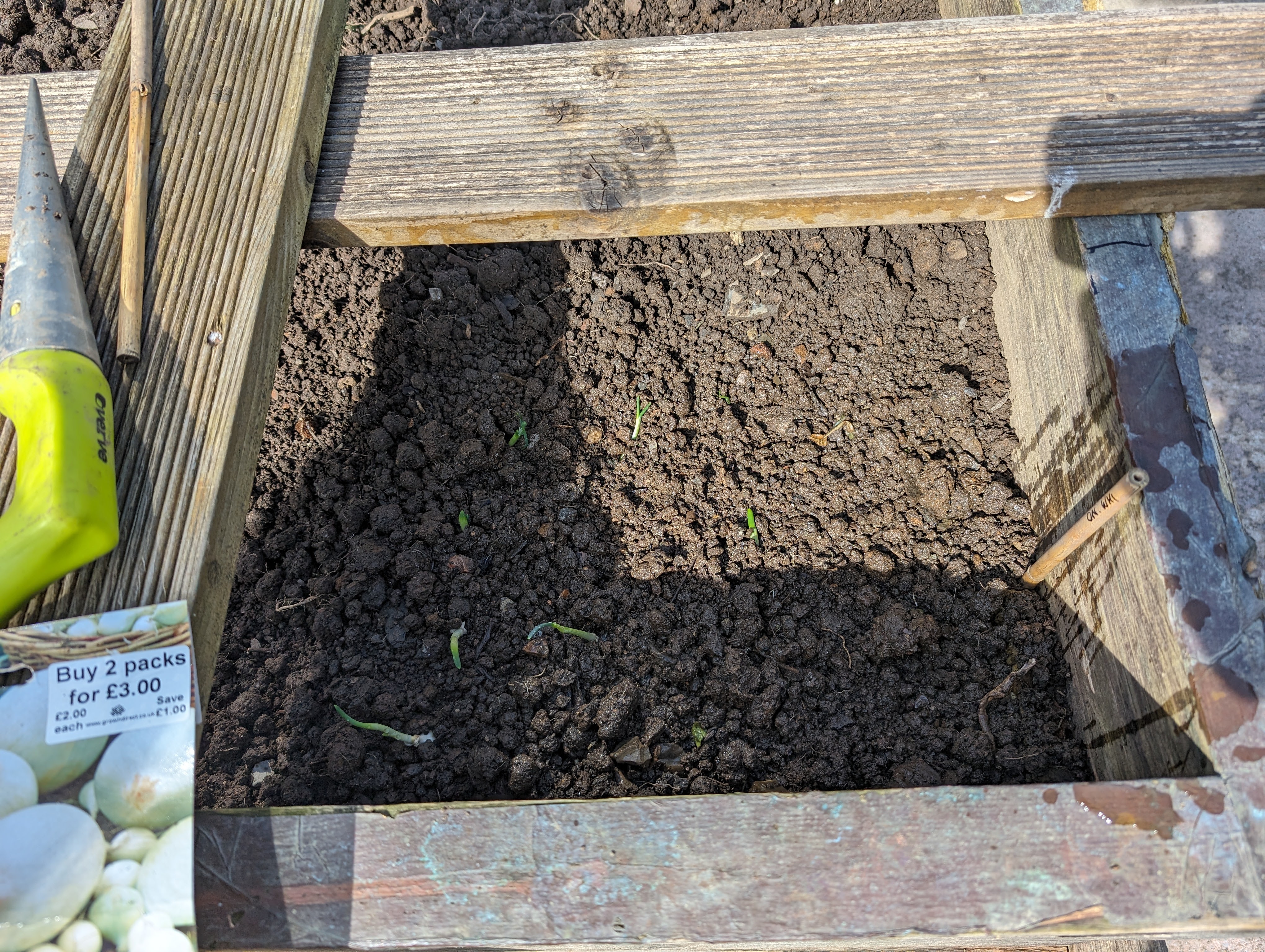 This year I’m behind (am I behind if I’m behind every year?) in the garden department. I’ve cleared out one raised bed and, as of today, started planting. Onions and spinach are first and I’m using a square-foot approach for simplicity. The onions are going in (white snowball and yellow varieties) at a density of 16 per foot, and spinach at a density of 9 plants per foot. I still haven’t planned the rest of the space, but likely it will involve carrots, beetroot, peas, possibly beans, and more!