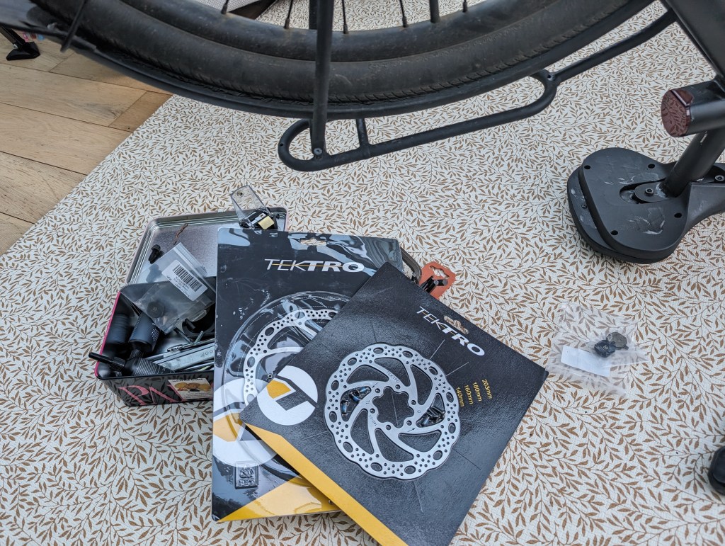 From early on in my VanMoofing, the brakes were a little bit frustrating. They had a tendency to be overly squeaky although did work well. I hadn’t thought much about the braking until I saw a post about a series of improvements to make the day to day experience of the bike more pleasant. One was seat post suspension given the lack of other suspension on the bike for increased ride comfort. The next upgrade was perforated brake rotors. The theory is that the perforated rotors dissipate heat more efficiently, allow water and braking dust to drain, and are a little lighter. I’ve replaced the rotors with Tektro ones and replaced the worn brake pads too. VanMoof has some good instructional videos on how to take the wheels off and how to replace brake pads. A few of the steps are a bit of a faff, but in general it’s easily enough done.