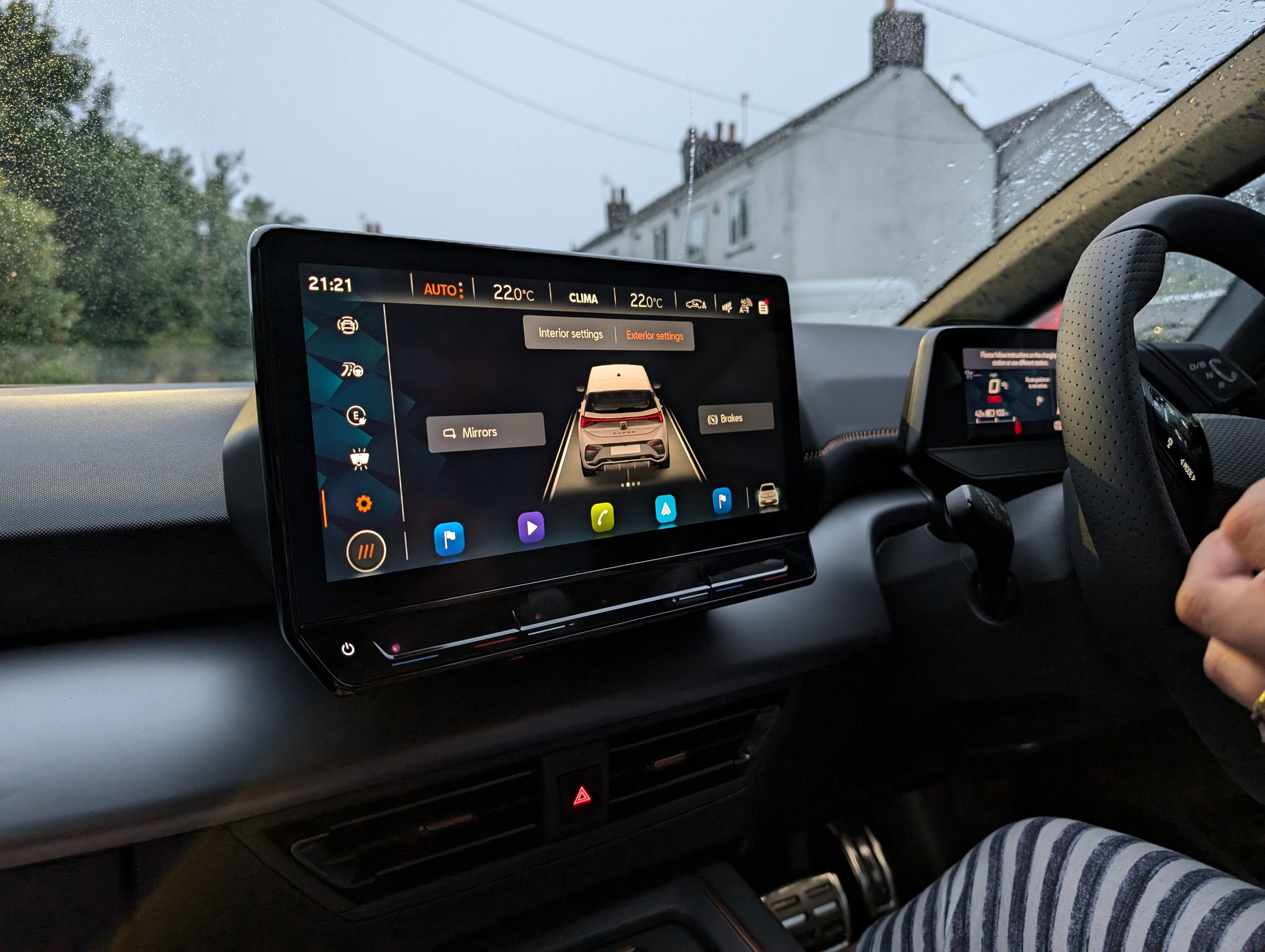 There are different driving style options too, although some quick reading on relevant forums seems to suggest they do little to change the actual driving experience. Most of the controls and options are accessed through the central touchscreen although there are a few touch sensitive buttons below this, a traditional hazard light button, and steering wheel controls. There’s a smaller screen behind the wheel which provides the standard dash instrument views plus a simplified navigation view.
