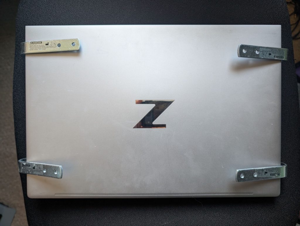 And yes, I was already planning on an anti-scratch coating so the rougher metal of the hooks and screws wouldn’t scratch the laptop. The first iteration incorporated draft proofing foam tape that provided considerable cushioning. So much cushioning that the laptop no longer fitted in place (a minor inconvenience for a laptop mount).