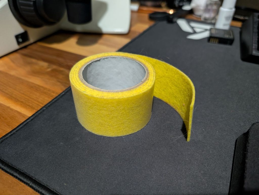 My back-up plan involved using fleece/felt tape I had spare from another project. It wasn’t as luxuriously cushioned as the first attempt, but at least the laptop fitted and it provided protection from the metal surfaces.