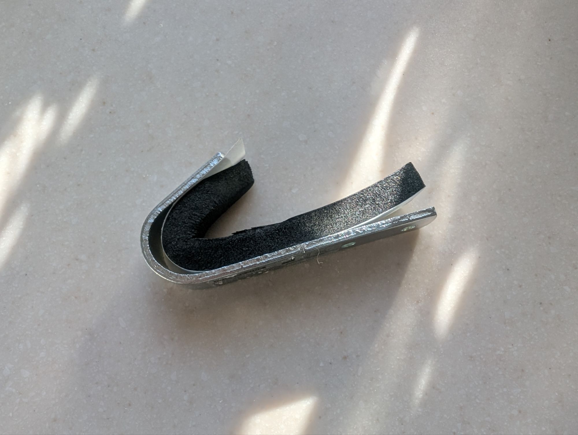 And yes, I was already planning on an anti-scratch coating so the rougher metal of the hooks and screws wouldn’t scratch the laptop. The first iteration incorporated draft proofing foam tape that provided considerable cushioning. So much cushioning that the laptop no longer fitted in place (a minor inconvenience for a laptop mount).