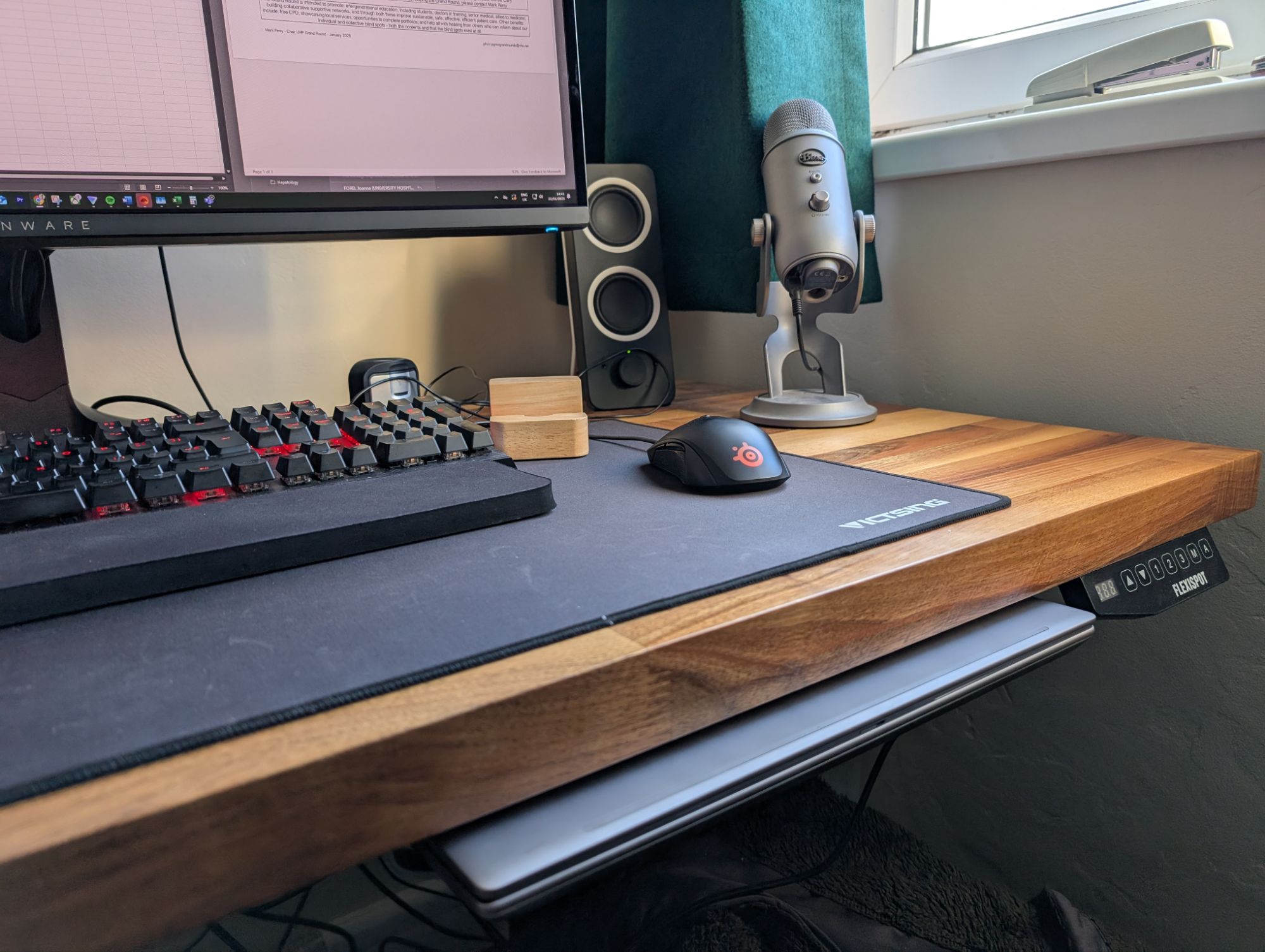 I settled on the design you see there as it supports the laptop well and doesn’t block any important ports. The first configuration restricted access to the power socket and USB C ports which was no good. The second configuration provided reasonable support whilst still being able to access USB ports on both sides of the PC. One drawback is that you have to unplug USB devices before inserting or removing the laptop, but it’s still a damn sight more convenient than the previous arrangement. It also allows for plenty of air circulation, which is important in a well specced laptop.