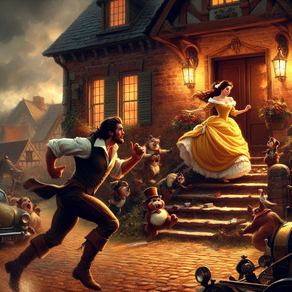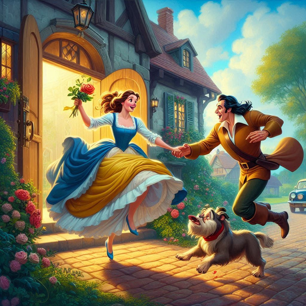 Belle rushed back to her father, Maurice, as quickly as possible. On the way back, Belle was intercepted by Gaston who proposed marriage.