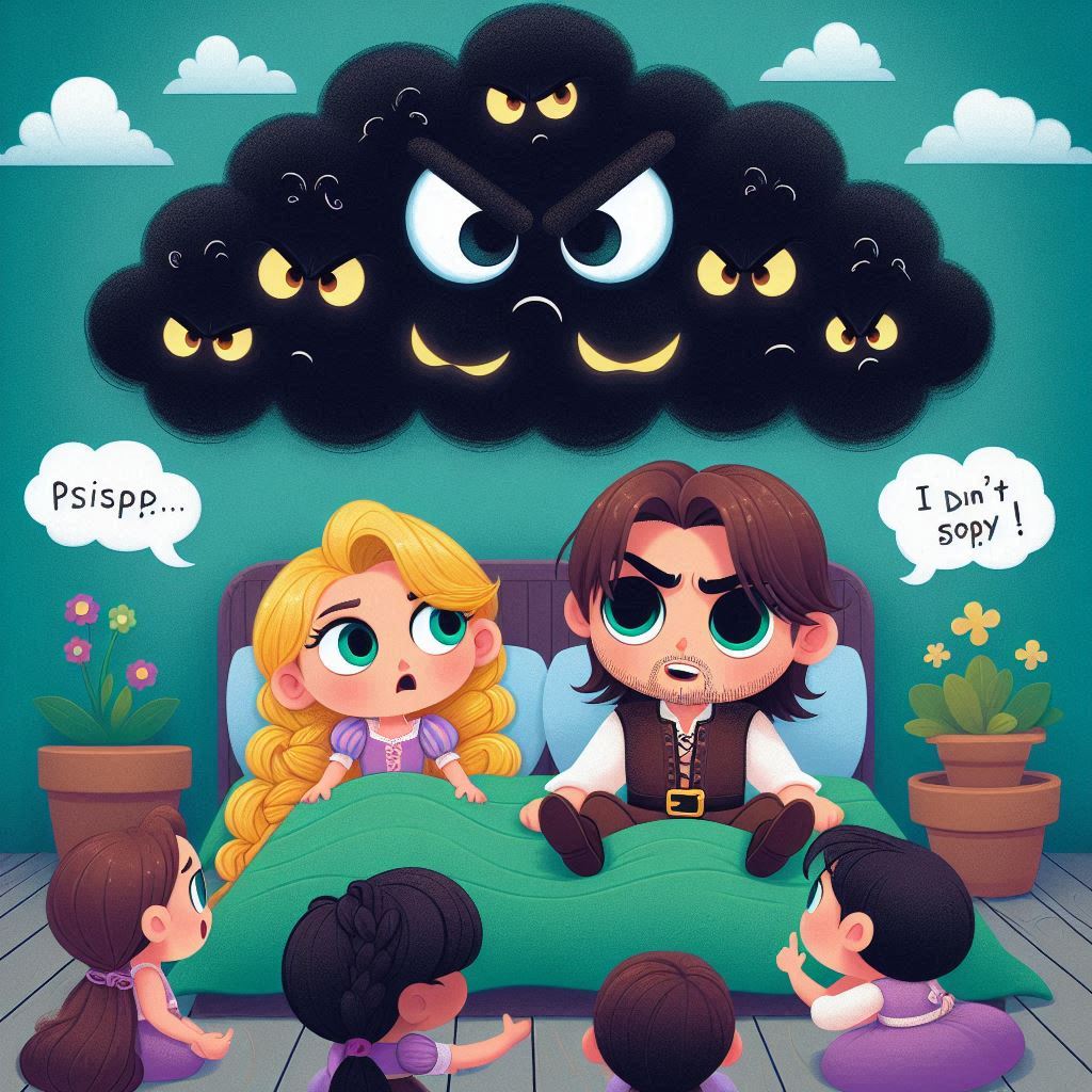 Long, long ago, there was a dark, dark cloud, with naughty eyes, which surrounded Rapunzel. Our hero was living on a sunny sandy beach, so the appearance of said cloud was most unwelcome. She had been comfortable in her sand tower until now.