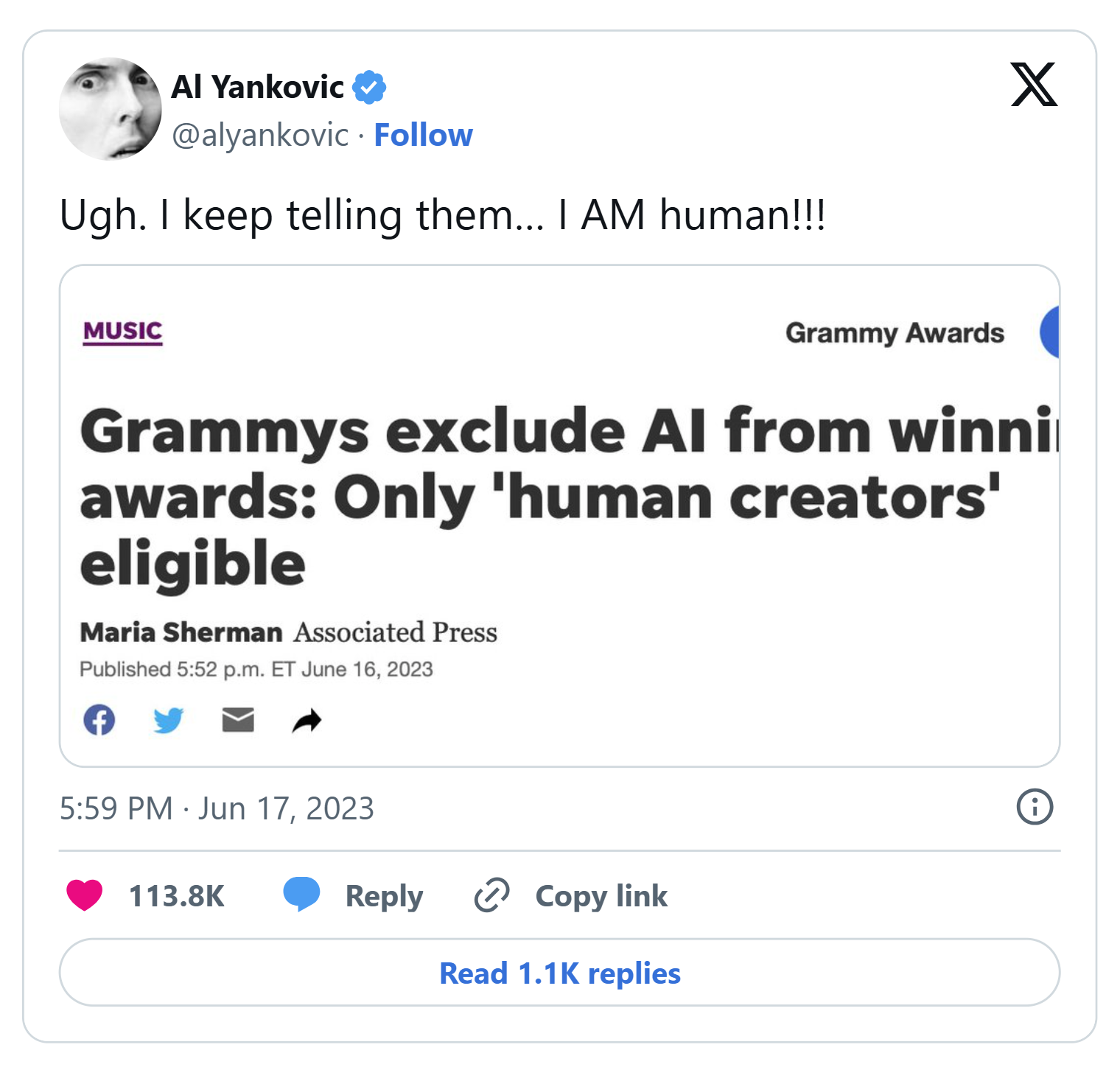The lower case “L” and uppercase “i” has resulted in some hilarious comments. Chief of all was the response Weird Al posted to the Grammy’s announcement that they were only including human creators.