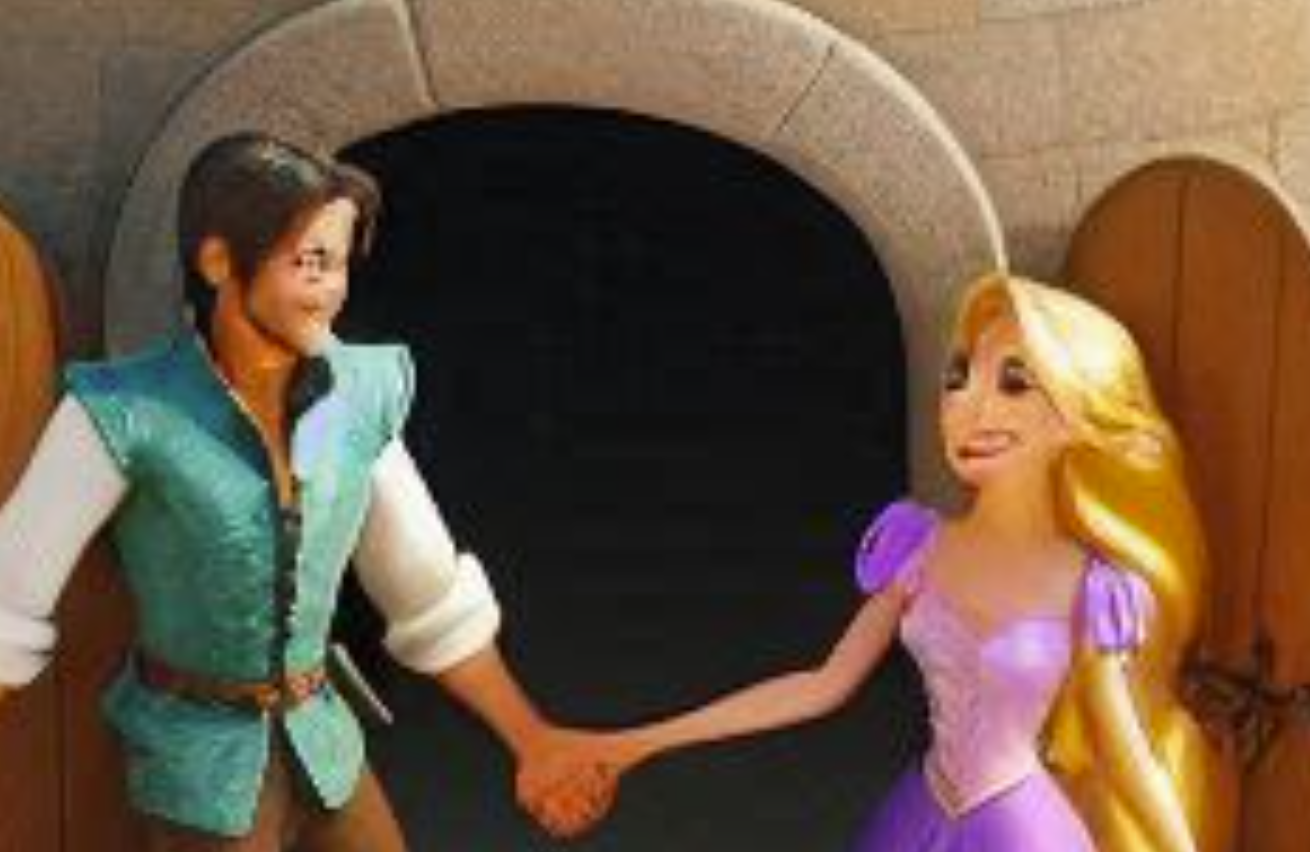 Flynn had been out foraging for treasure but rushed back when he heard Rapunzel. Flynn had upgraded his waistcoast to a fine silk version, and he had grown out his brown hair into luscious locks as part of his island look. He finally had everything he wanted. An island. A beautiful bride. And they were surrounded by enormous piles of money. And he was tan. Of couse, they never were alone with Pascal and Maximus around.