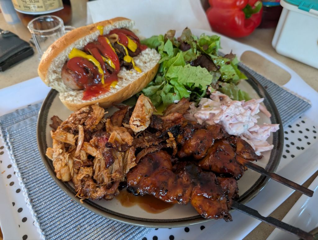 Why bother with all the faff? Once I got the hang of it (and after investing in an electric starter), it’s really easy to make great food in. Over the weekend I cooked a whole chicken and smoked a pork shoulder to test it out (recipe here), and both came out really well with minimal effort. The chicken cooked at around 150 degrees for an hour and 15 (it wasn’t a particularly big chicken), and the pork shoulder was cooked at 110 degrees Celsius (although there was some fluctuation up to 125 initially as I got the hang of temperature regulation) for five hours.