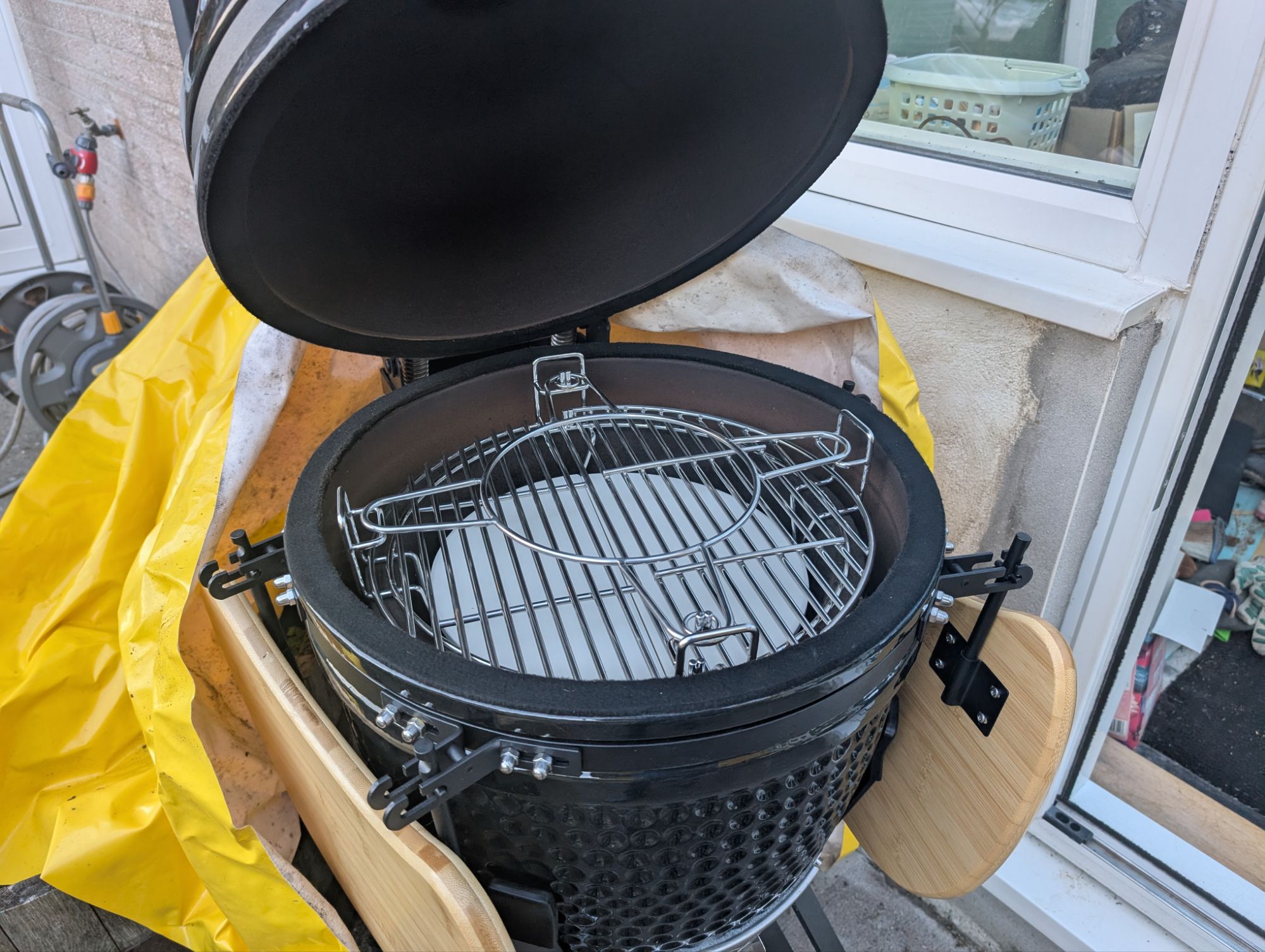 What’s the catch, I hear you say? Although the Aldi Kamado (or Kamado Karl as I’m now calling it after Karl Albrecht, one of the founding Aldi brothers) comes with a grill and a heavy duty stand, that’s about it. There are no bells and whistles on this, so some additional purchases are needed. I’ve bought a cheap cover as it is going to spend most of time outdoors, and I also invested in a divide and conquer cooking rack. They’re currently out of stock at Harbour Lifestyle, but I can confirm they fit the Aldi Kamado well. To slow cook or for indirect cooking you need a heat deflector to stop the food being burnt to a crisp by the intense heat of the charcoal. The divide and conquer system allows multiple levels of grilling, and a combination of direct and indirect cooking simultaneously.