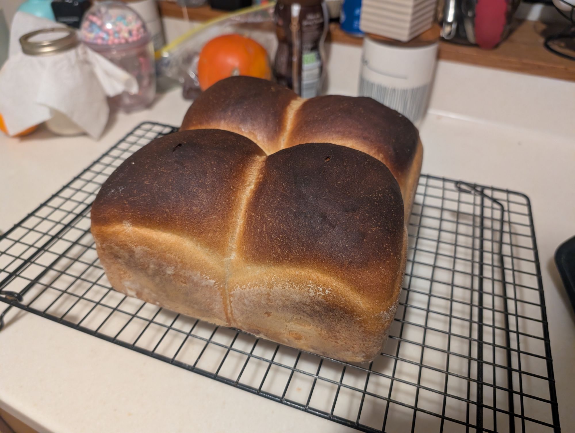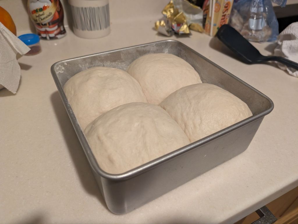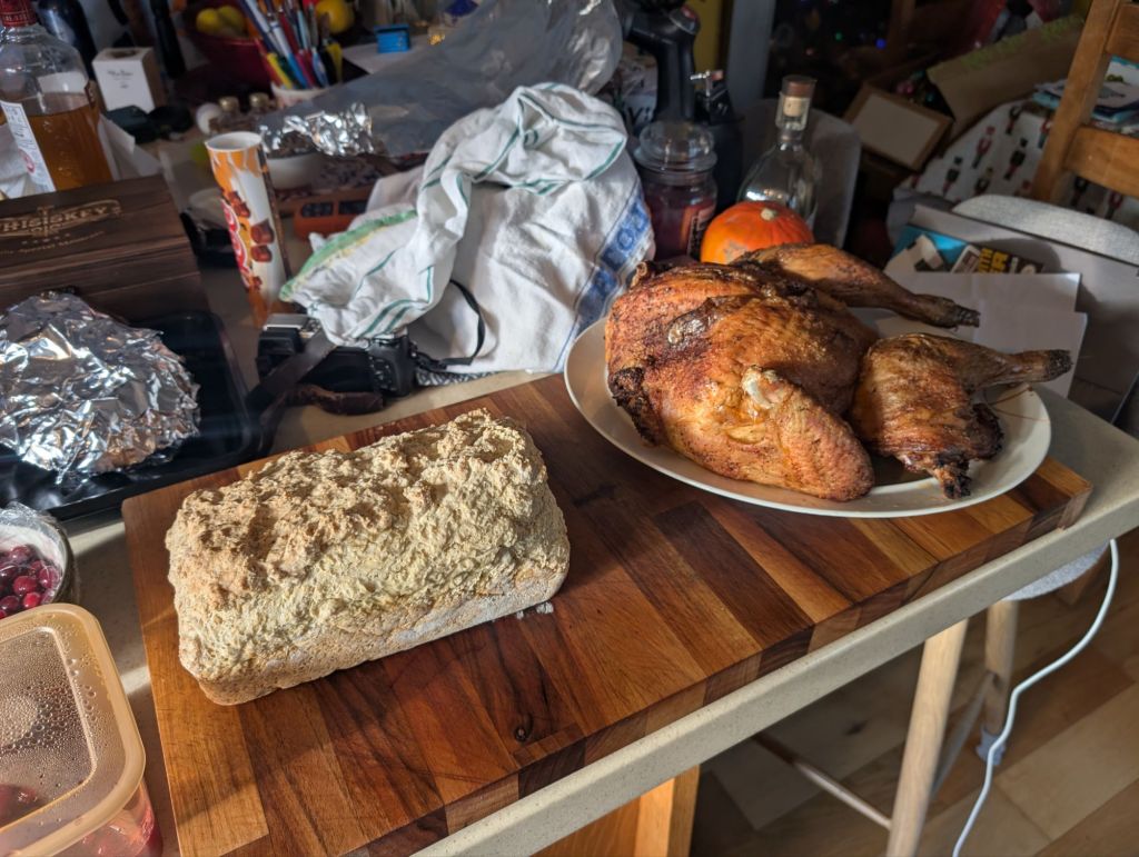Another season association deeply embedded in my psyche is Nutty Krust bread. This is a batch loaf made by Irwin’s in Northern Ireland (although alternatives are available) which has a uniquely dense (but not too dense) crumb and thick crust which is perfect for toasting. It also makes excellent breadcrumbs for stuffing (another tradition from mum). Nutty Krust isn’t readily available in Plymouth, unfortunately. I am yet to see a batch loaf outside of Ireland, but that didn’t stop me. One website went out of it’s way to re-create Nutty Krust at home, and having made it on several occasions I can testify to the quality of the recipe. The only thing is the oven temperature and baking time which lacks some precision. I did bake it at the highest temperature I could for about half of the cooking time but cut it back to 240 degrees C (or thereabouts) to avoid burning it too much. It’s important for the crust, but the bread still needs to be edible at the end of the day. That recipe makes four mini loaves. The Irwin’s website describes a drawn out fermentation process, but it’s not really required and the result is perfect as is.