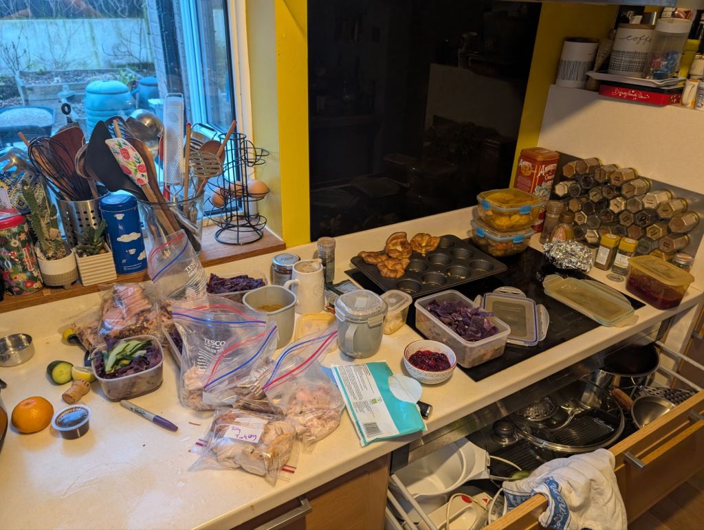 Most of the preparations other than the turkey, sprouts, and Yorkshire puddings were finished on Christmas Eve. This made cooking on the big day a relaxed experience and much more pleasant. Plenty of time to sit down and enjoy opening presents with the family.