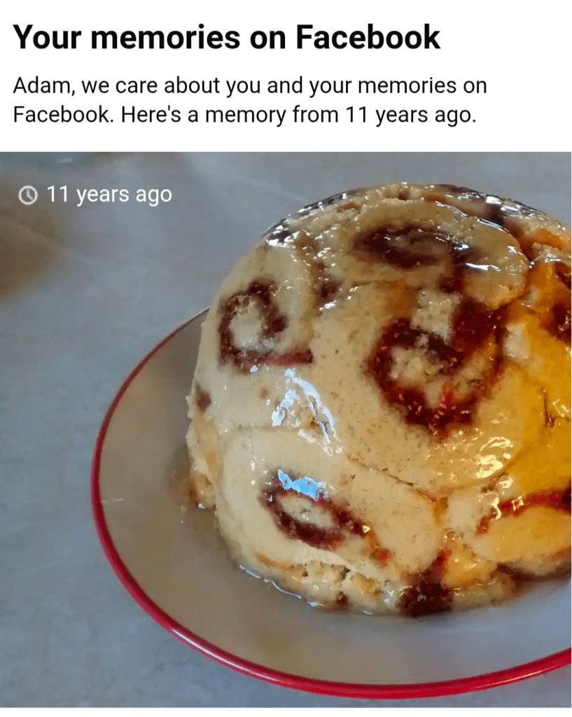 Part of the problem is that I didn’t glaze the finished product (the original used an arrowroot and sugar syrup), but the real issue was the texture of the swiss roll. Far too tough. The filling was delicious though, and we still managed to finish it after several days of concerted effort.