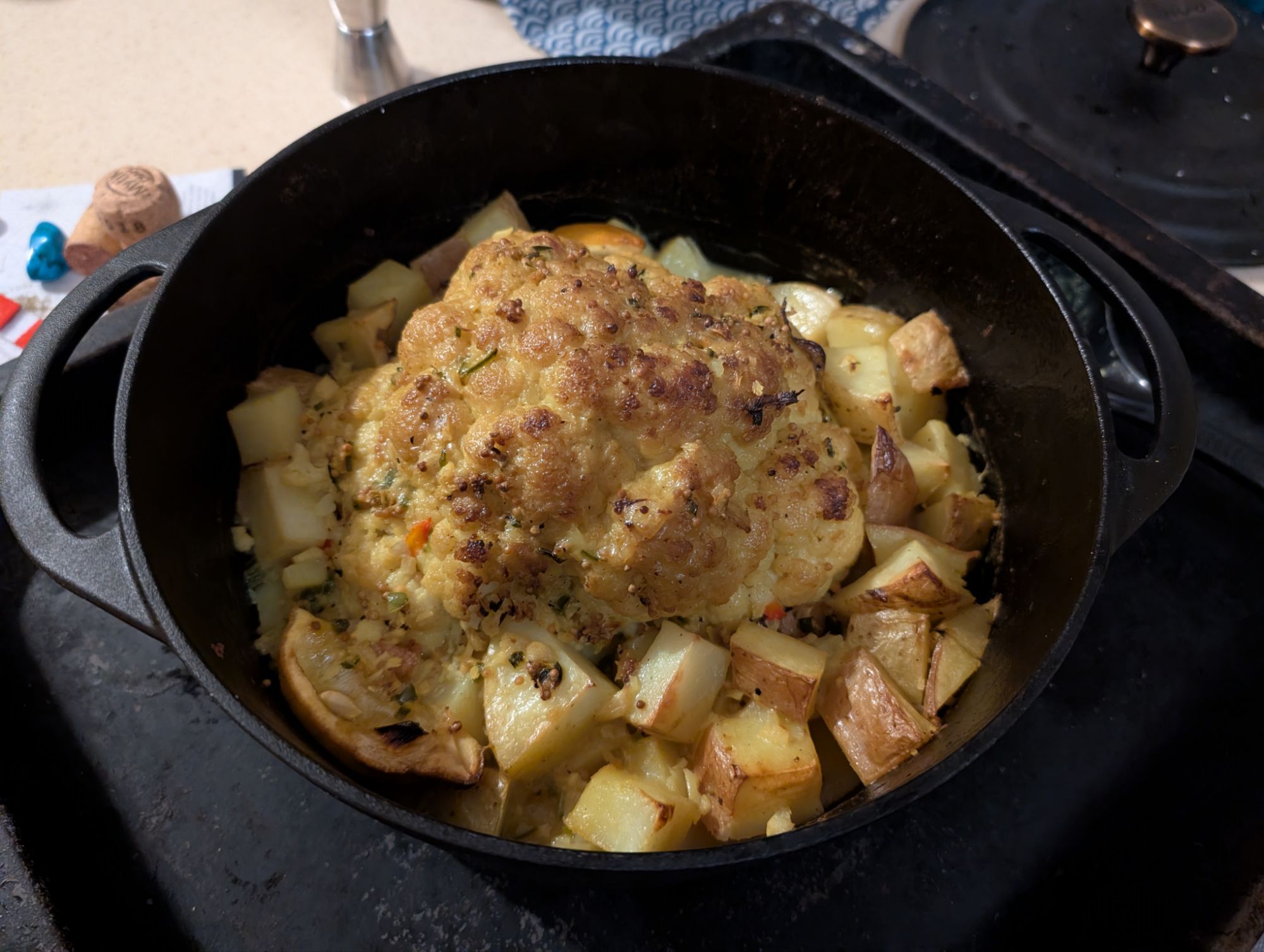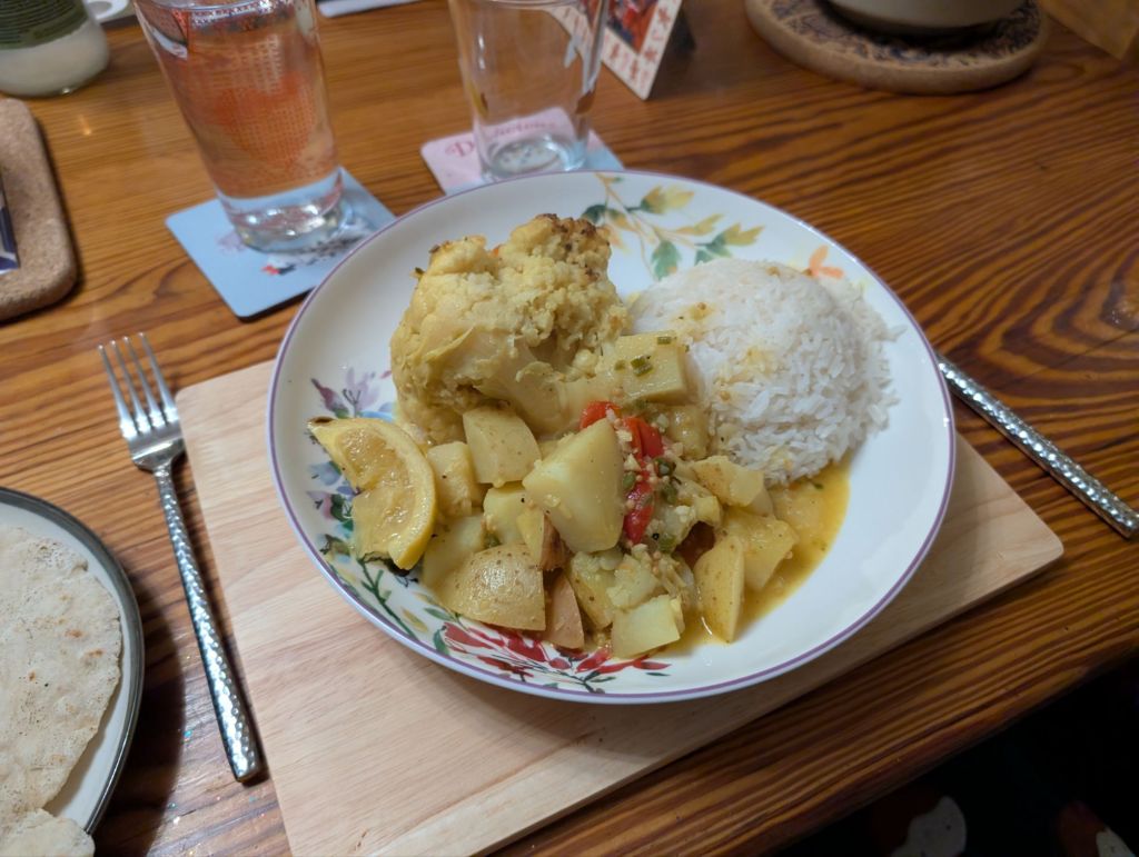 I also dabbled in a little vegan cookery with a cauliflower and potato curry that worked out nicely, served with freshly made oat-yoghurt flatbreads and dal. The new year has brought a bit more creativity back into my cooking.